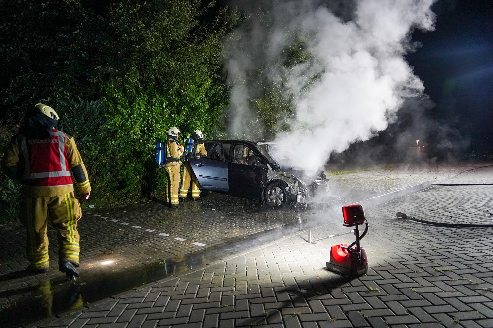 Bij aankomst van de brandweer stond het voertuig al in lichterlaaie. Ondanks snel optreden kon niet worden voorkomen dat de auto volledig uitbrandde.