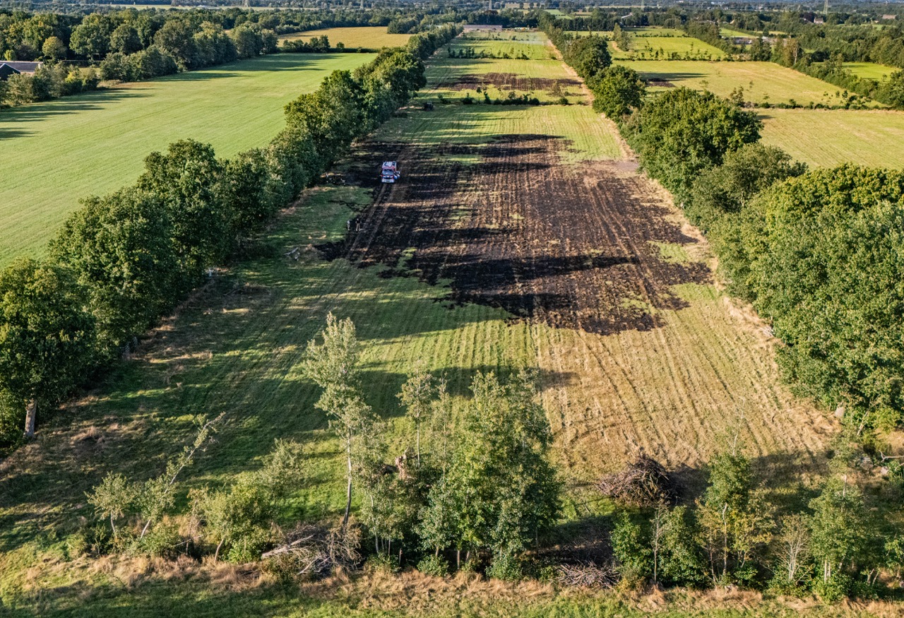 Er kwam veel rook vrij, die richting Drogeham trok en daar goed te ruiken was. Eén van de weilanden raakte voor een groot deel zwartgeblakerd. Over de oorzaak van de brand is nog niets bekend. De brandweer had het vuur snel onder controle.