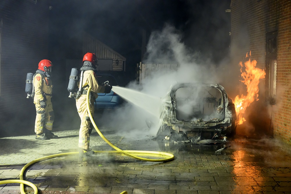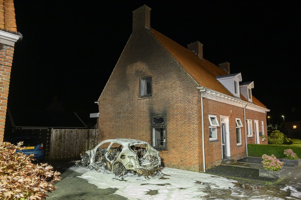 Auto vliegt in brand, vlammen zorgen voor schade aan woning