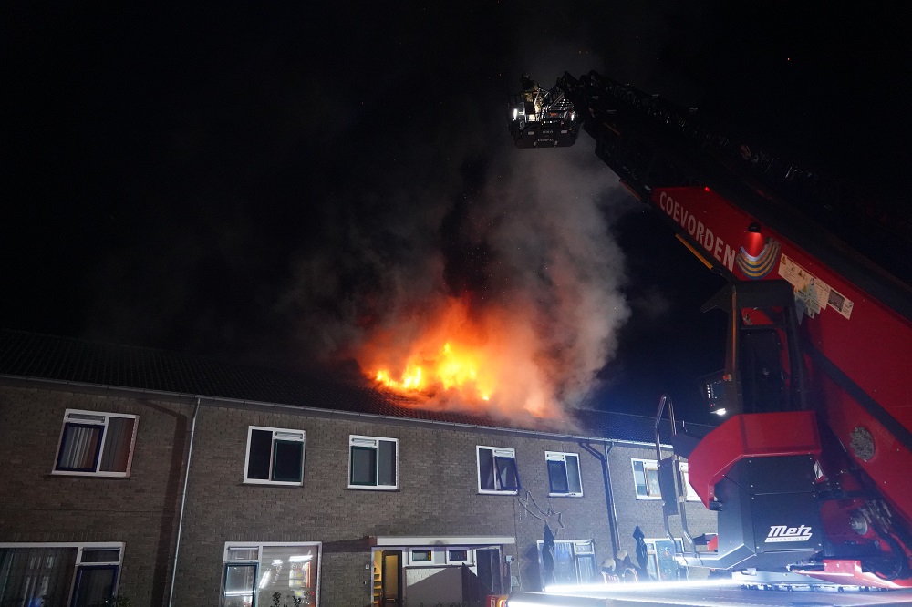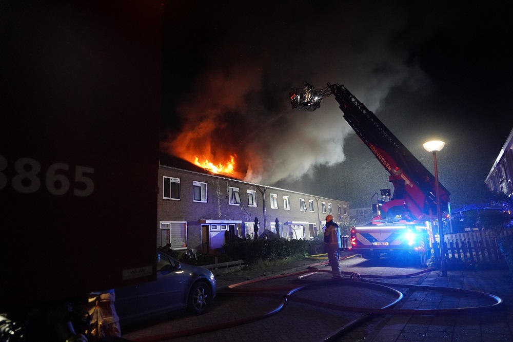 De brandweer rukte met groot materieel uit en krijgt steun van meerdere korpsen uit de regio. Er wordt zowel van binnenuit als vanaf het dak geblust, onder meer met een hoogwerker. Het hele blok van acht woningen is ontruimd. Alle bewoners zijn veilig buiten en er zijn vooralsnog geen gewonden gemeld.