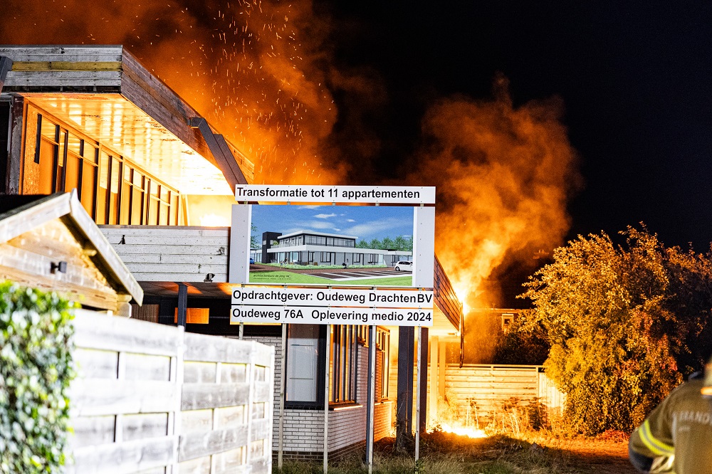 DRACHTEN – In de nacht van vrijdag op zaterdag is de brandweer uitgerukt voor een uitslaande brand in een leegstaand pand aan de Oudeweg in Drachten. Een buurtbewoner ontdekte de brand rond 02.15 uur en sloeg alarm.