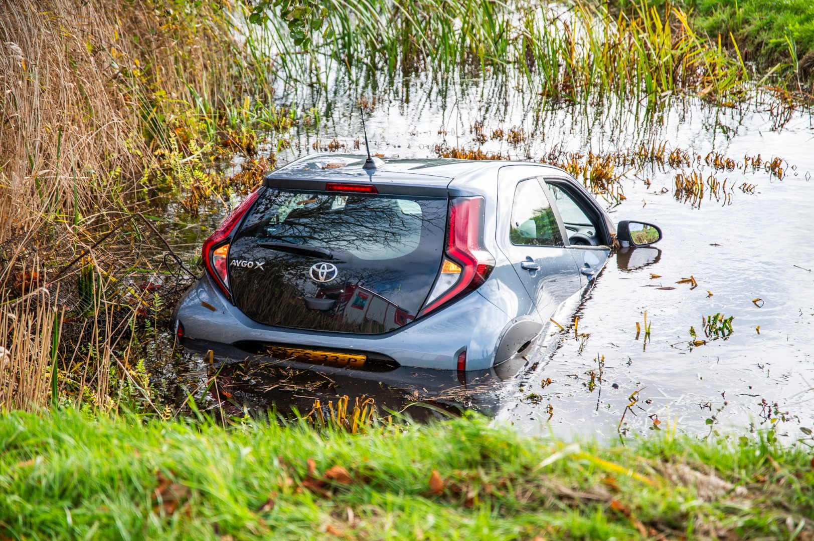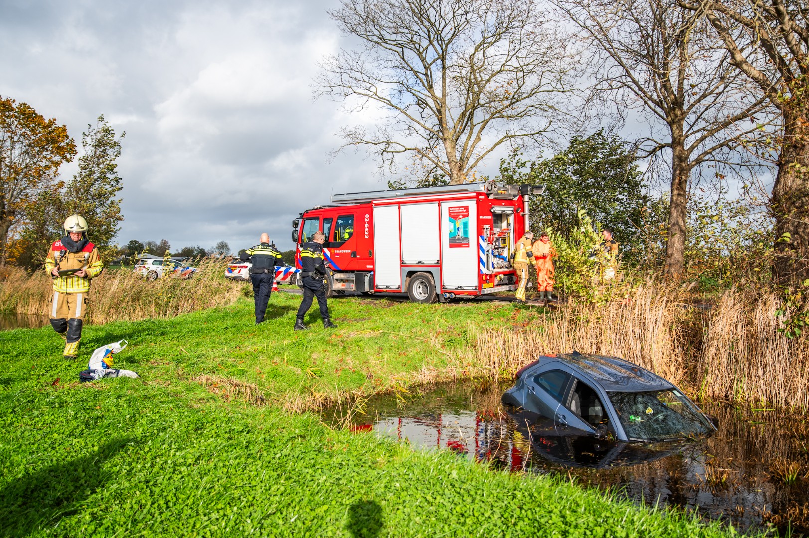 Auto belandt in sloot, twee inzittenden door brandweer uit voertuig gehaald
