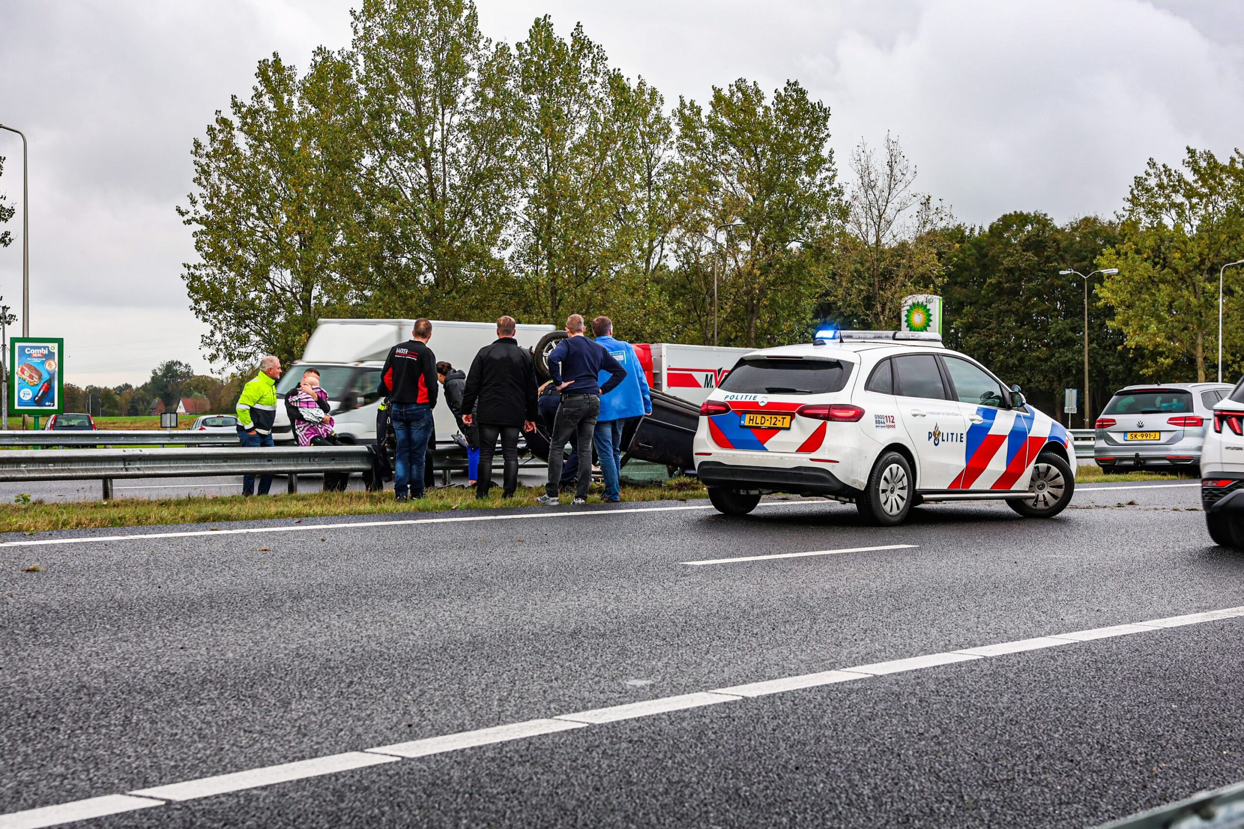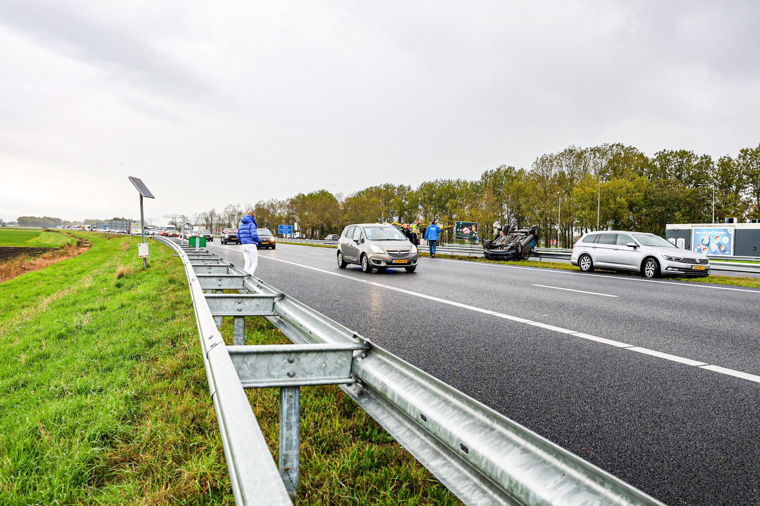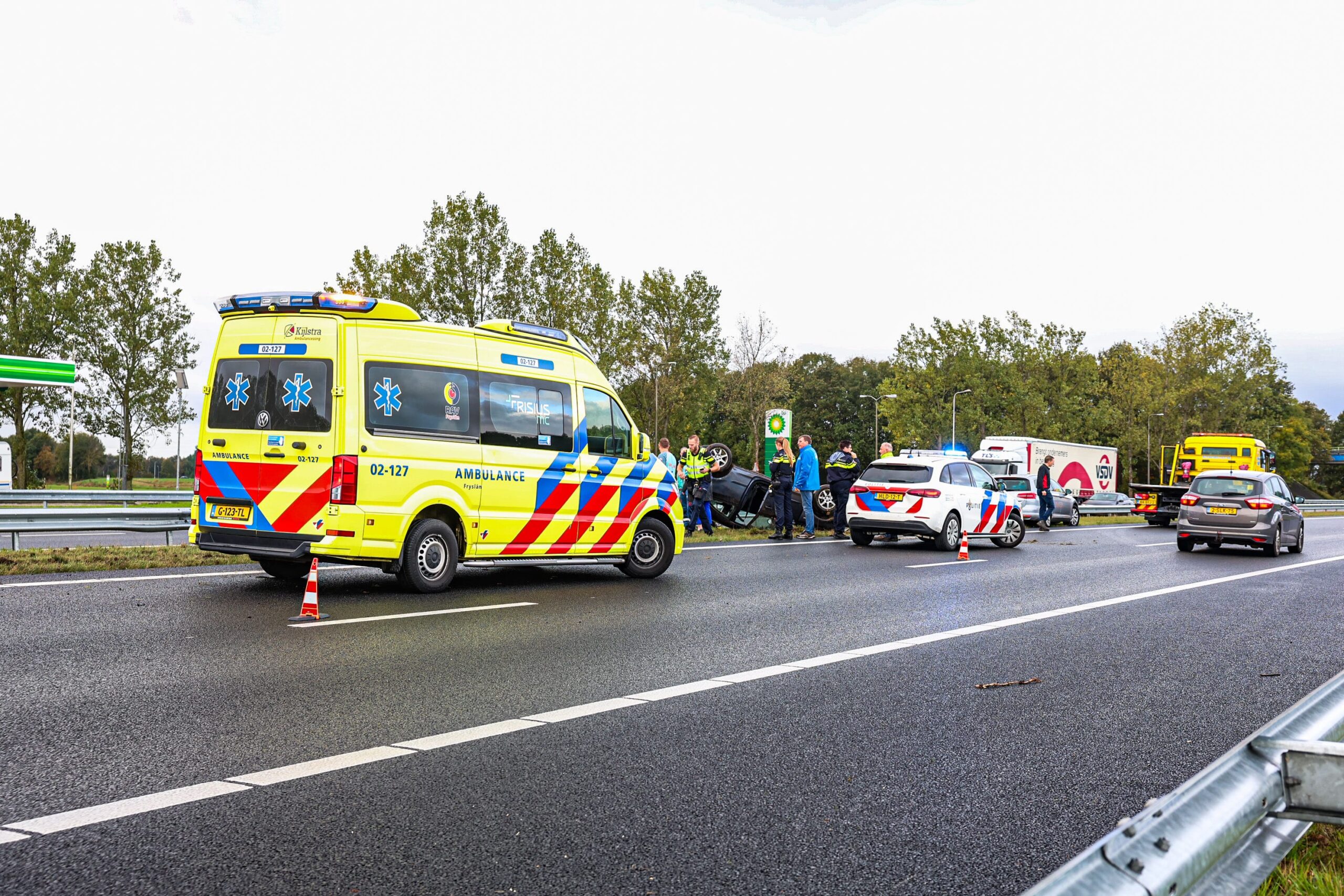 Rond 09:40 uur werden politie, ambulance en een traumahelikopter met spoed gealarmeerd. Bij aankomst troffen zij een auto op de kop aan in de middenberm van de snelweg.