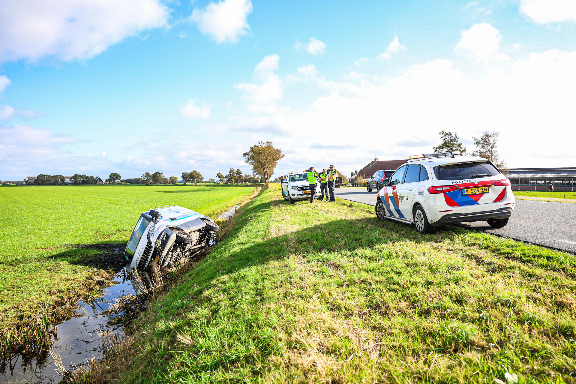 Geplaatst op 10 oktober 2025, om 16:15 uurWOUDSEND – Vrijdagmiddag zijn hulpdiensten rond 15.10 uur gealarmeerd voor een verkeersongeval op de N354 bij Woudsend. Een bestelbus raakte van de weg en belandde op zijn kant in een sloot.