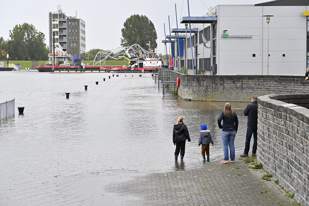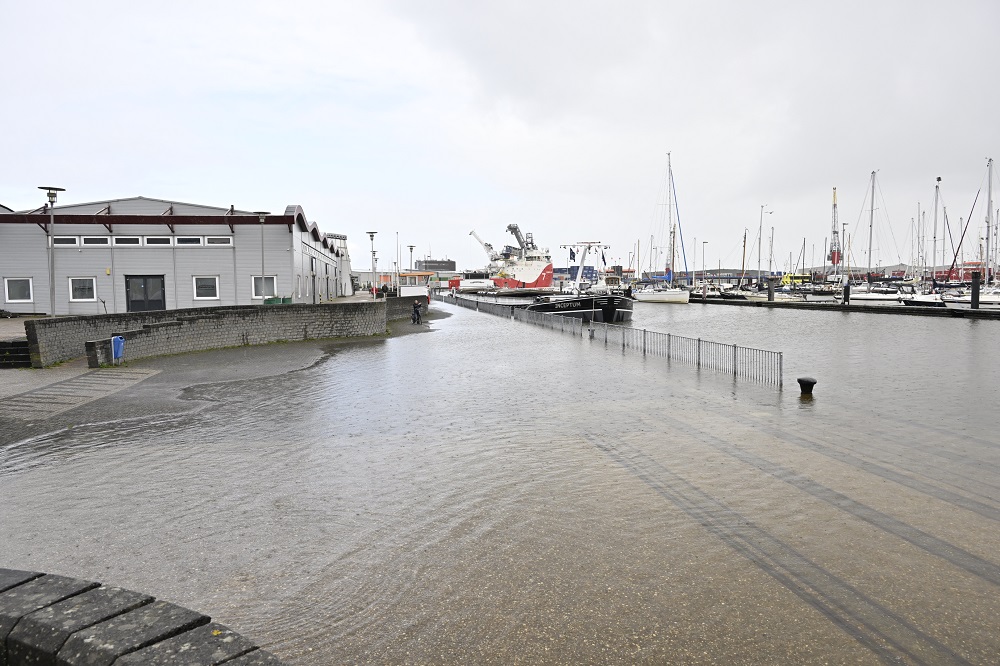 Kade Delfzijl onder water door hoge waterstand