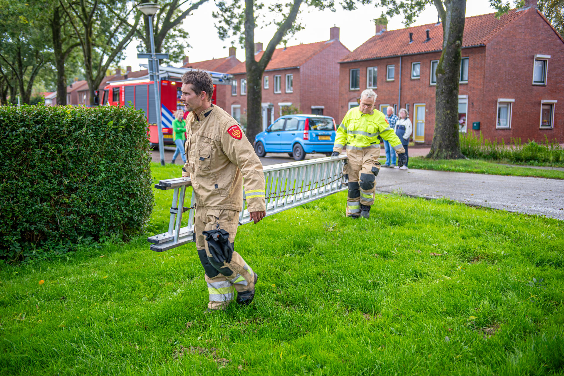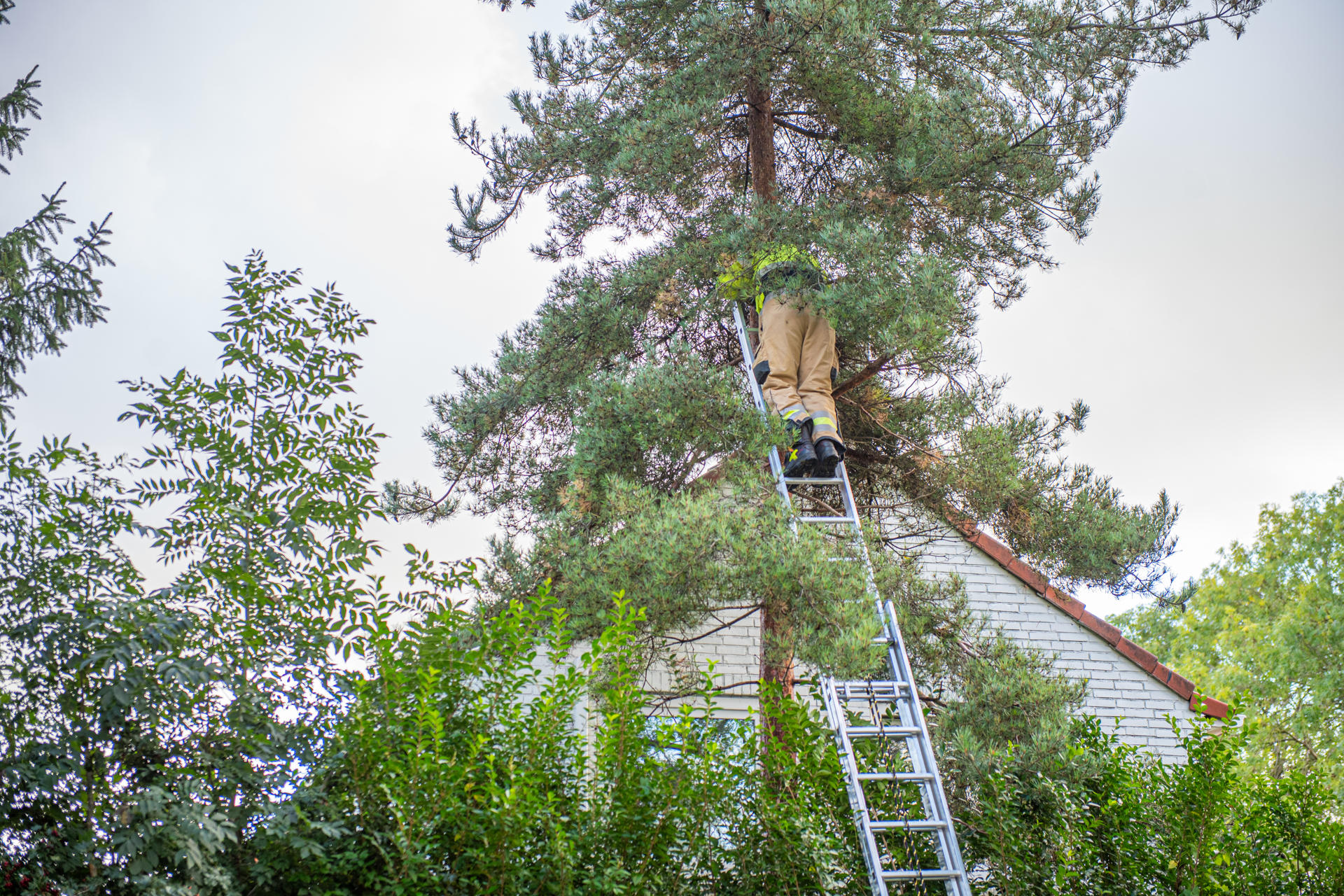 Met de ladderwagen probeerden de brandweerlieden haar te bereiken, maar Sarah had haar eigen plannen. Terwijl de redder steeds dichterbij kwam, stapte ze eigenwijs een tak verder, net buiten bereik. Uiteindelijk besloot ze zelf dat het mooi was geweest: met een sierlijke sprong landde ze op het dak van de woning, om daarna rustig naar beneden te klauteren en via de garage weer veilig naar binnen te verdwijnen.