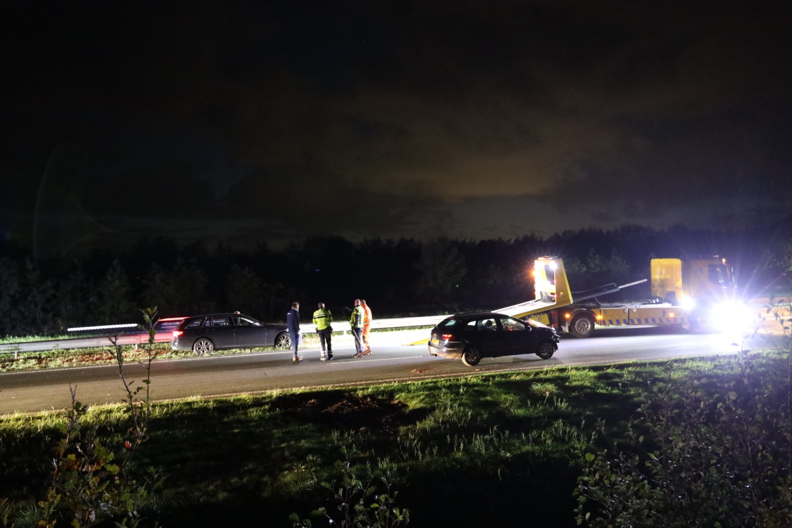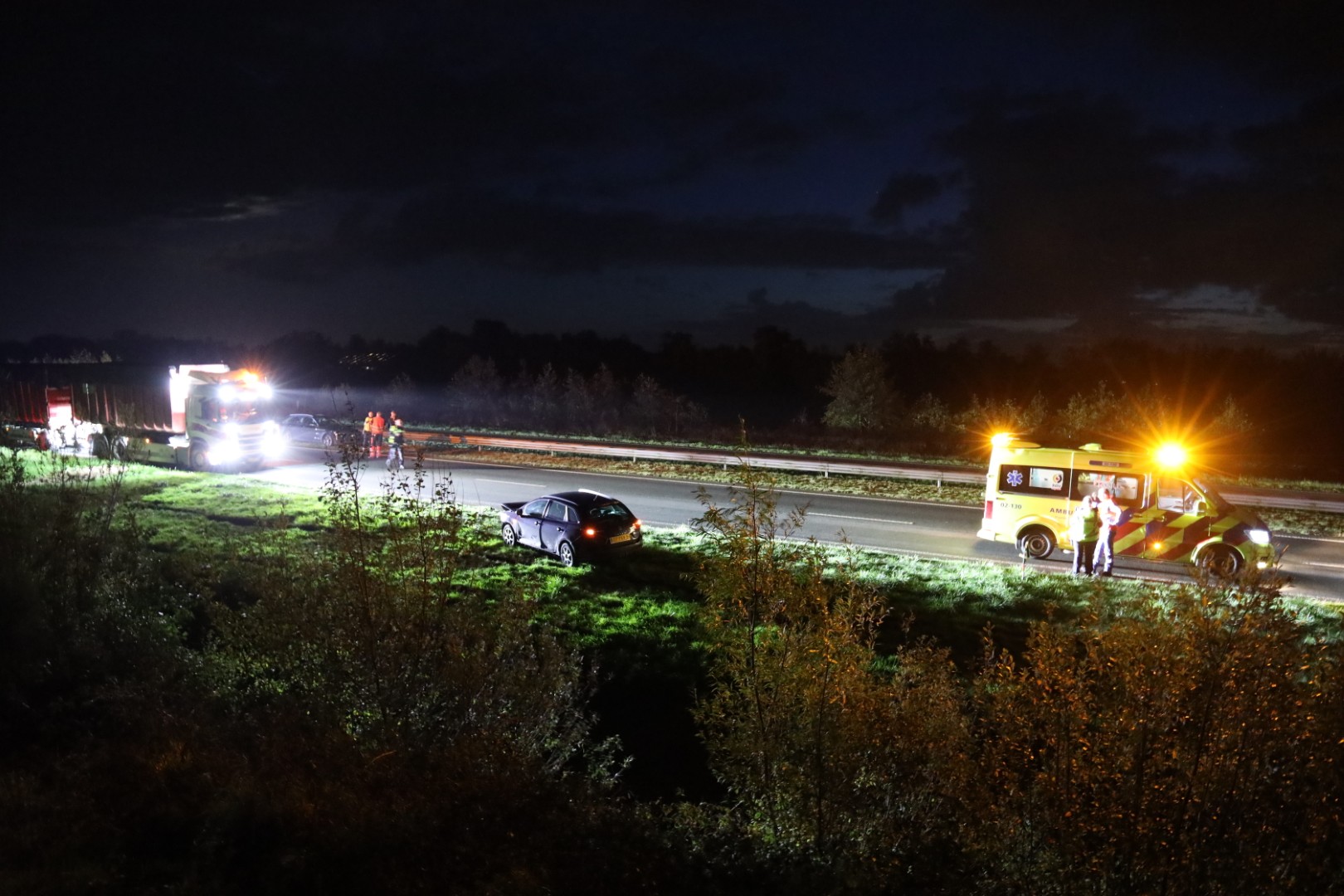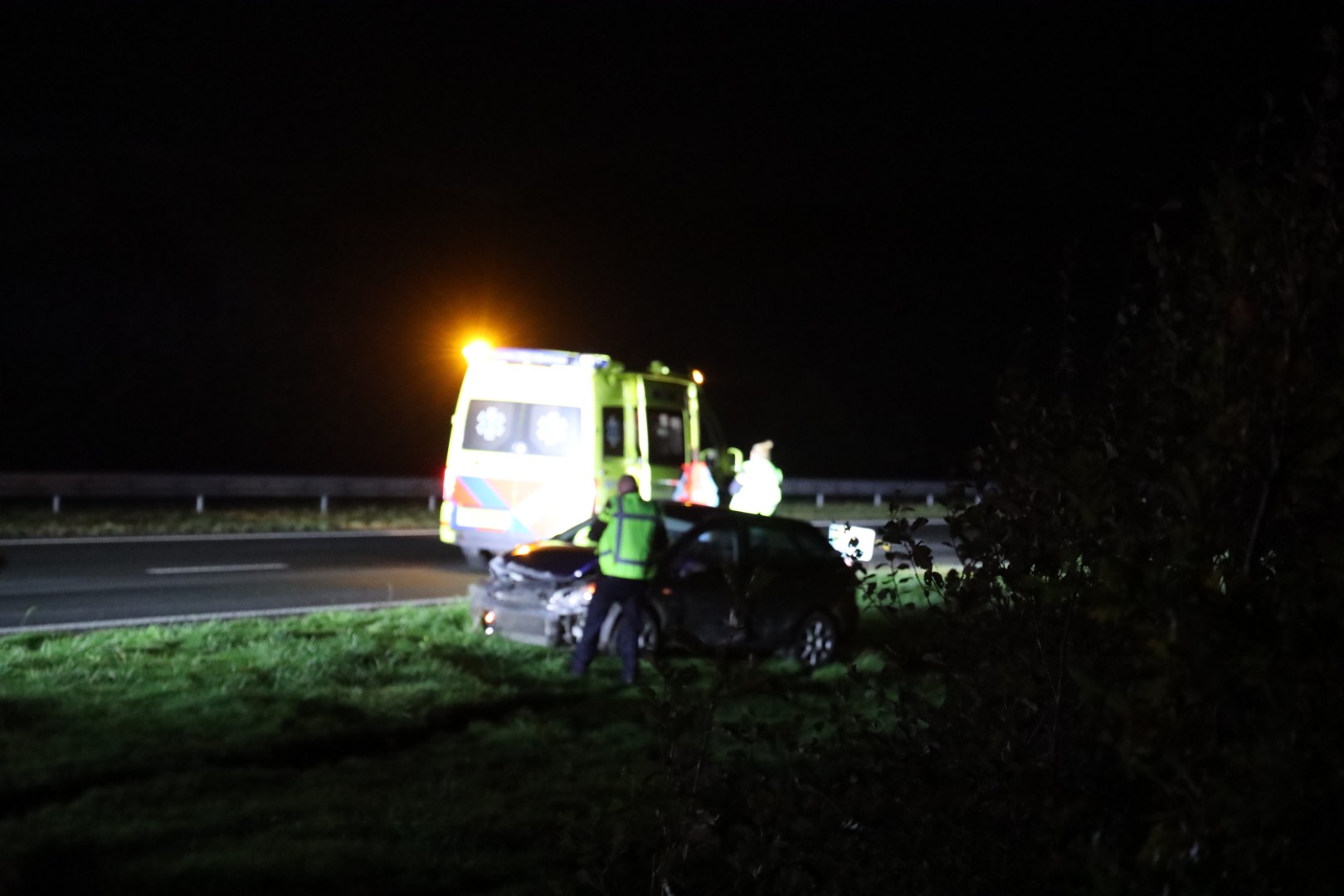 Geplaatst op 28 oktober 2025, om 22:32 uurBURGUM – Op de Centrale As (N356) ter hoogte van Burgum heeft zich dinsdagavond een verkeersongeval voorgedaan waarbij minstens twee auto’s betrokken waren. Eén van de voertuigen kwam tot stilstand tegen de midden geleider, terwijl de andere auto in de berm op zijn dak belandde.