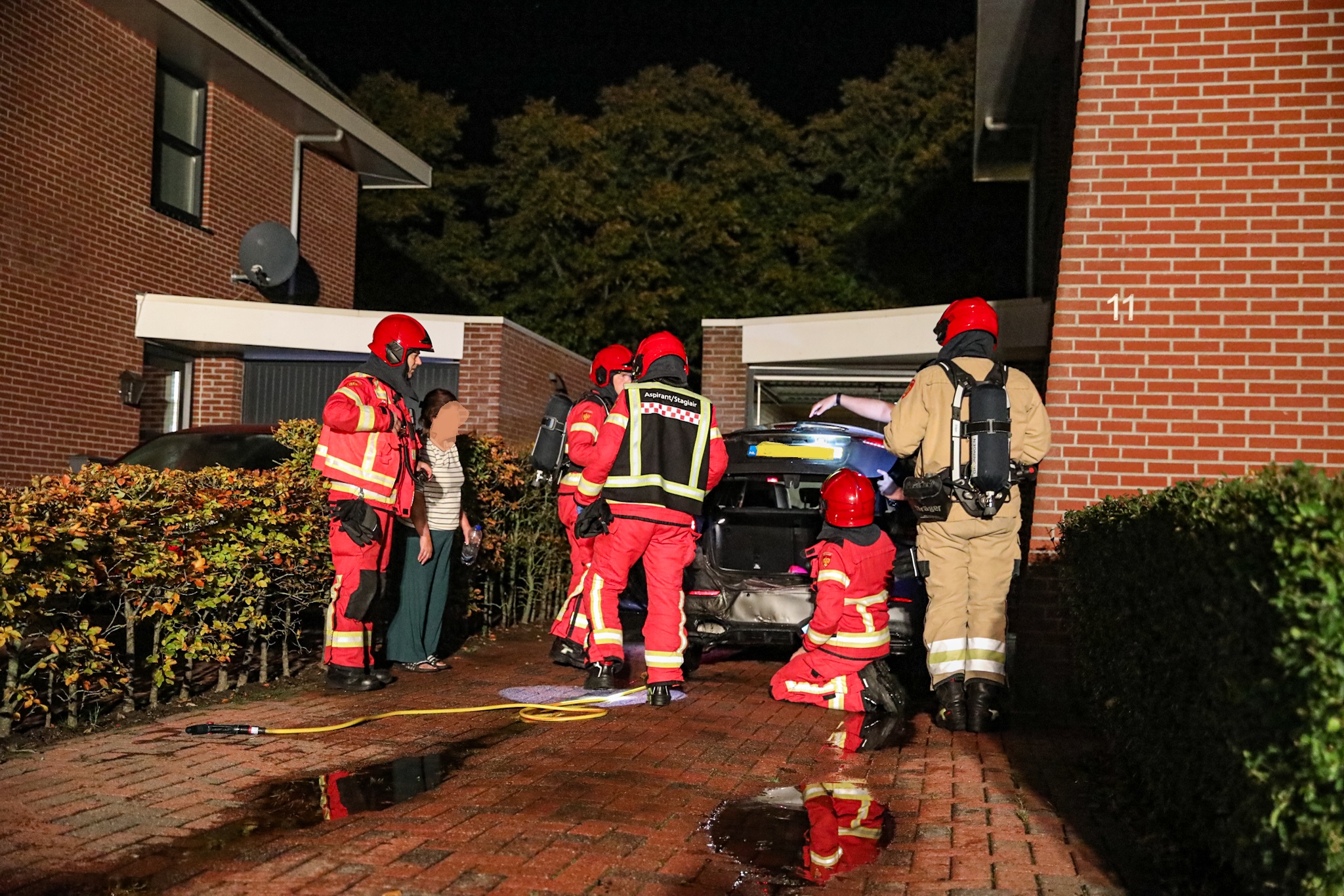 De eigenaar wist het vuur met een tuinslang te blussen, waardoor de schade beperkt bleef tot de achterzijde van de auto. De brandweer voerde een nacontrole uit om herontsteking te voorkomen.