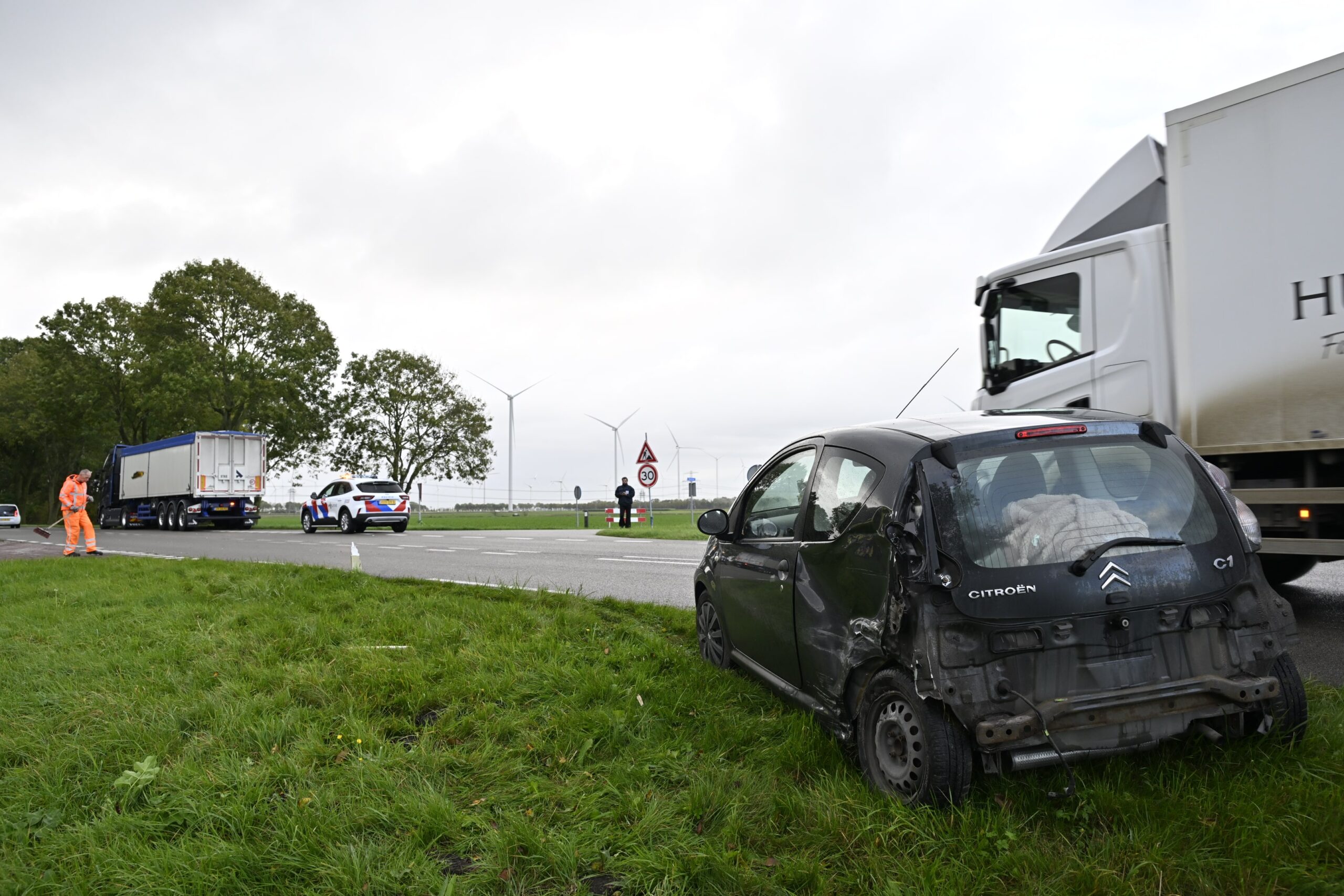 Het incident leidde tot aanzienlijke schade, vooral aan de personenauto. De bestuurster werd ter plaatse nagekeken door ambulancepersoneel, maar vervoer naar het ziekenhuis bleek niet nodig. De vrachtwagen kon na het verwijderen van loshangende onderdelen zijn weg vervolgen, terwijl de auto door een berger is afgesleept.