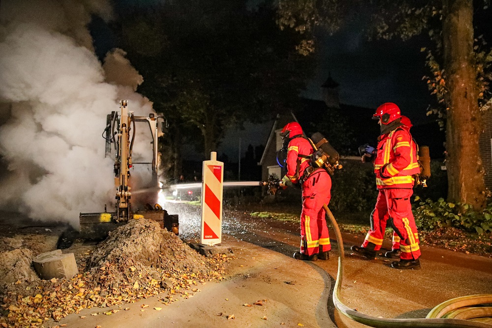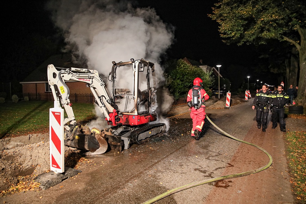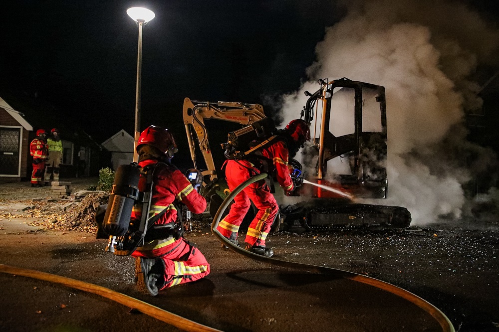 Mini-kraan uitgebrand, politie onderzoekt brandstichting