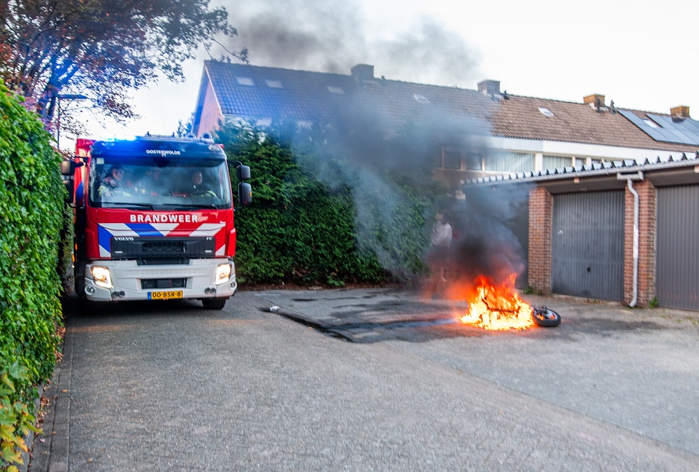 OOSTERWOLDE – Donderdagavond rond 18.35 uur is de brandweer uitgerukt voor een voertuigbrand aan de Assesorlaan in Oosterwolde. Ter plaatse bleek een scooter volledig in brand te staan.
