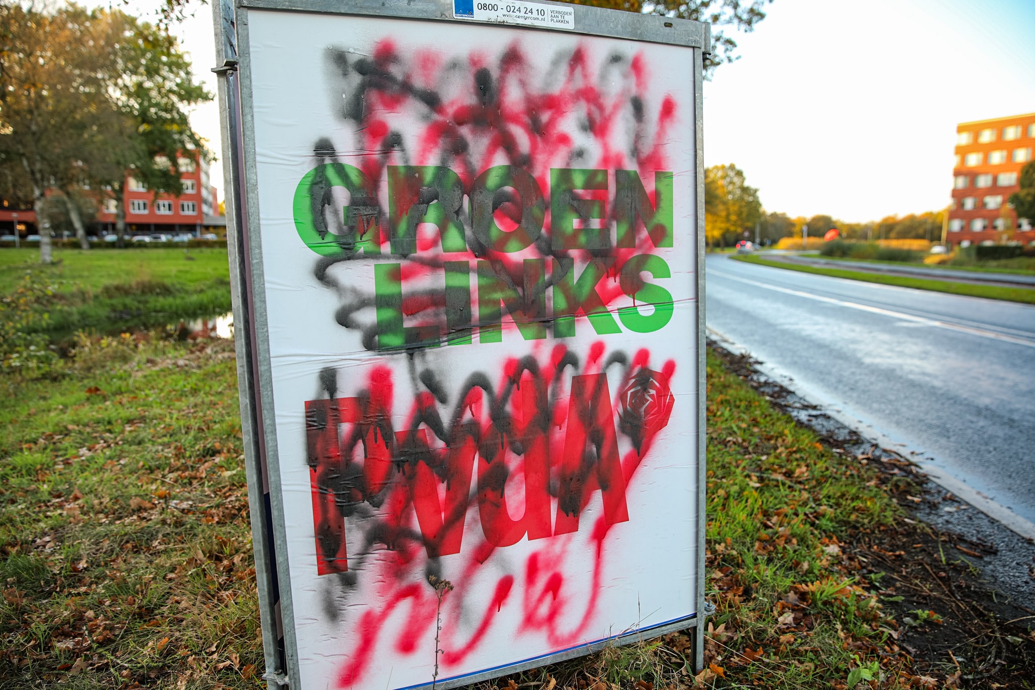 Geplaatst op 27 oktober 2025, om 17:29 uurVEENDAM – In aanloop naar de Tweede Kamerverkiezingen zijn in Veendam meerdere verkiezingsborden beklad. Op de borden zijn met grote letters ‘PVV’ en hakenkruizen aangebracht. De gemeente spreekt van een schandalige actie die geen enkel respect toont voor het democratisch proces.