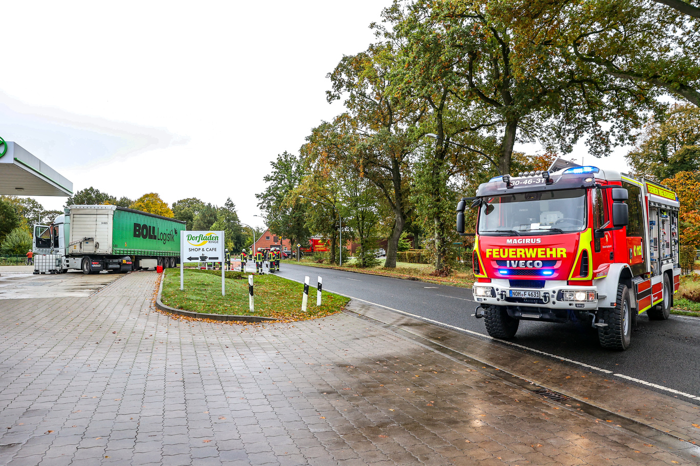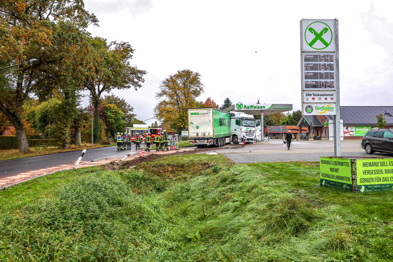 Ook de bestuurder van de vrachtwagen bleef ongedeerd. Na de botsing week de vrachtwagen uit en kon nog net voorkomen dat hij tegen het tankstation aanreed.