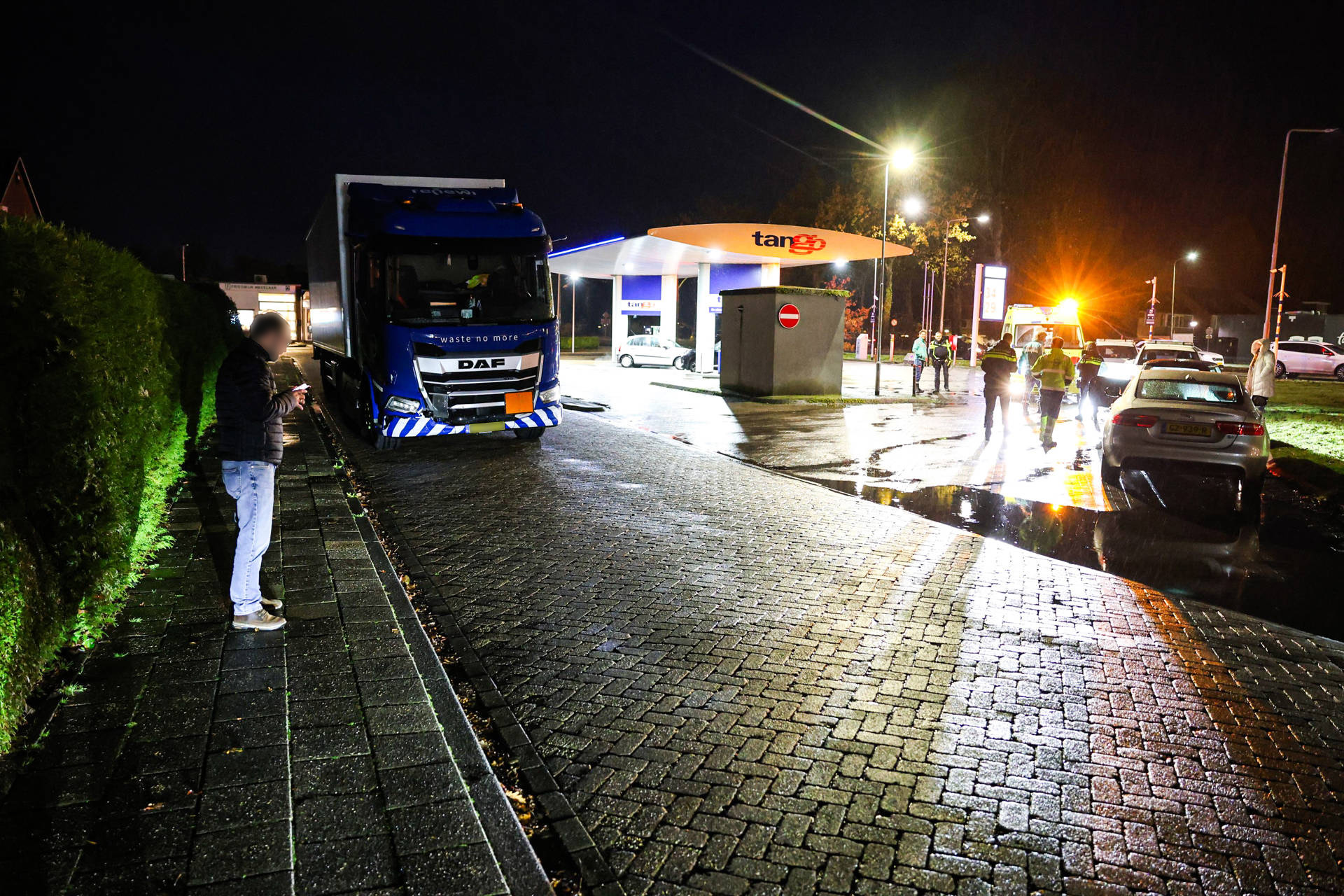 Auto botst op vrachtwagen bij tankstation, inzittende onderzocht