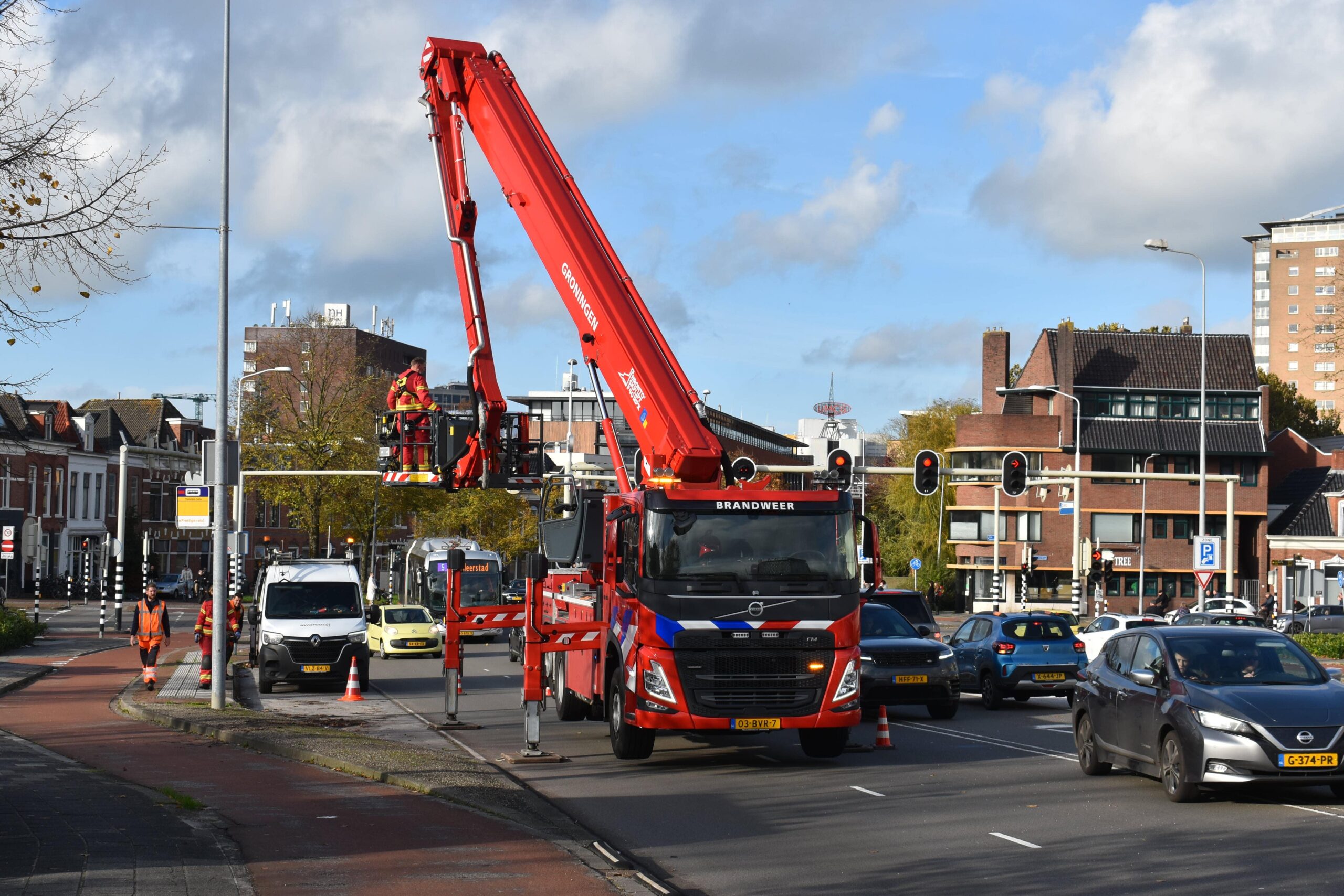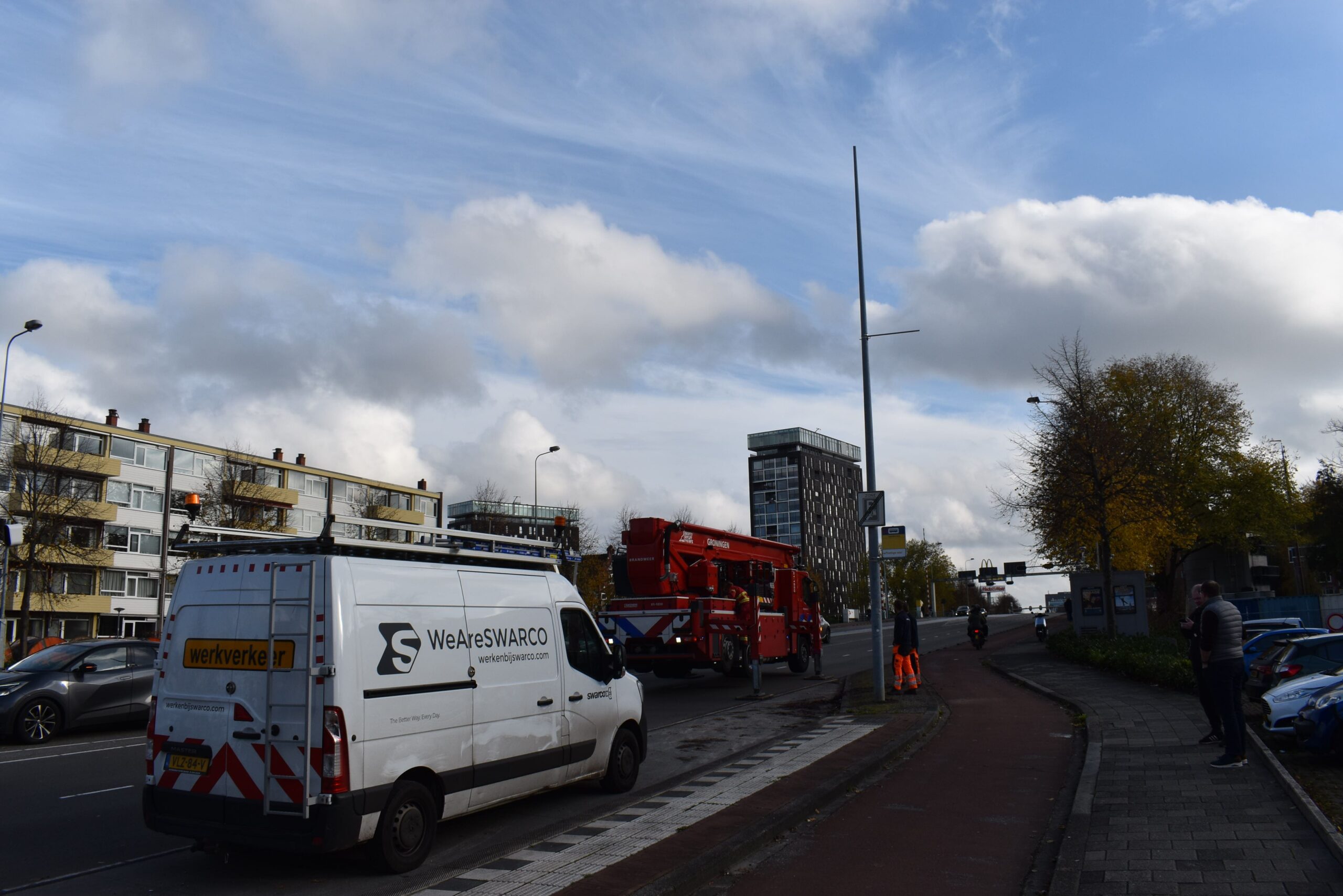 De melding kwam rond 13.45 uur binnen, waarna de brandweer met een hoogwerker ter plaatse kwam. Tijdens de inzet werd uit voorzorg één rijbaan en het naastgelegen fietspad tijdelijk afgesloten.