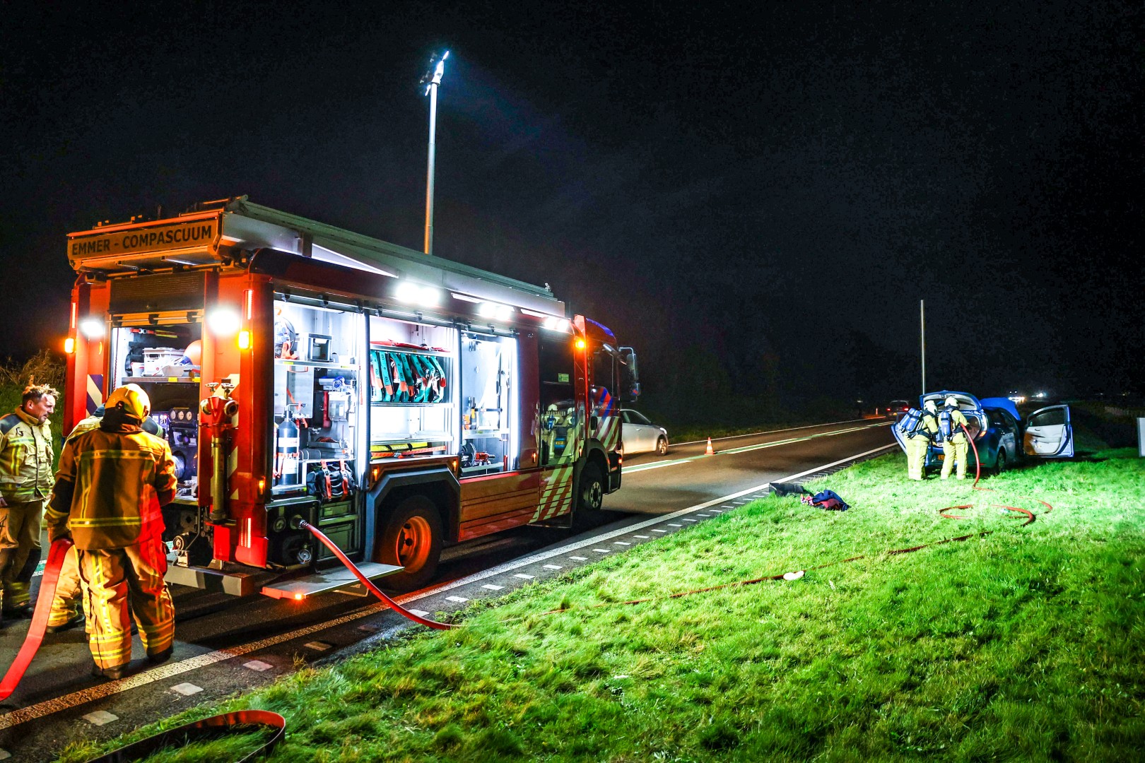 Geplaatst op 3 november 2025, om 22:55 uurROSWINKEL – De brandweer is maandagavond om 20.58 uur uitgerukt voor een autobrand aan de N391 bij Roswinkel. De brand ontstond in de kofferbak van het voertuig.