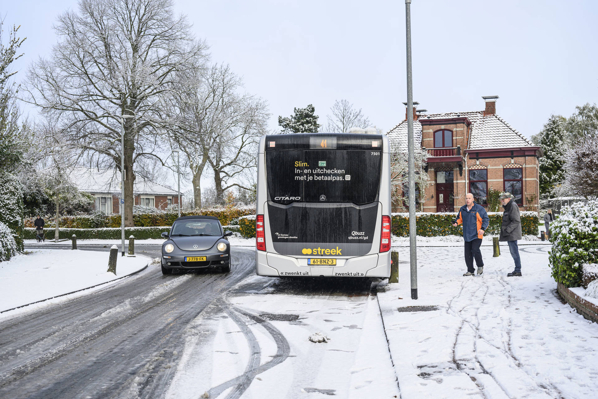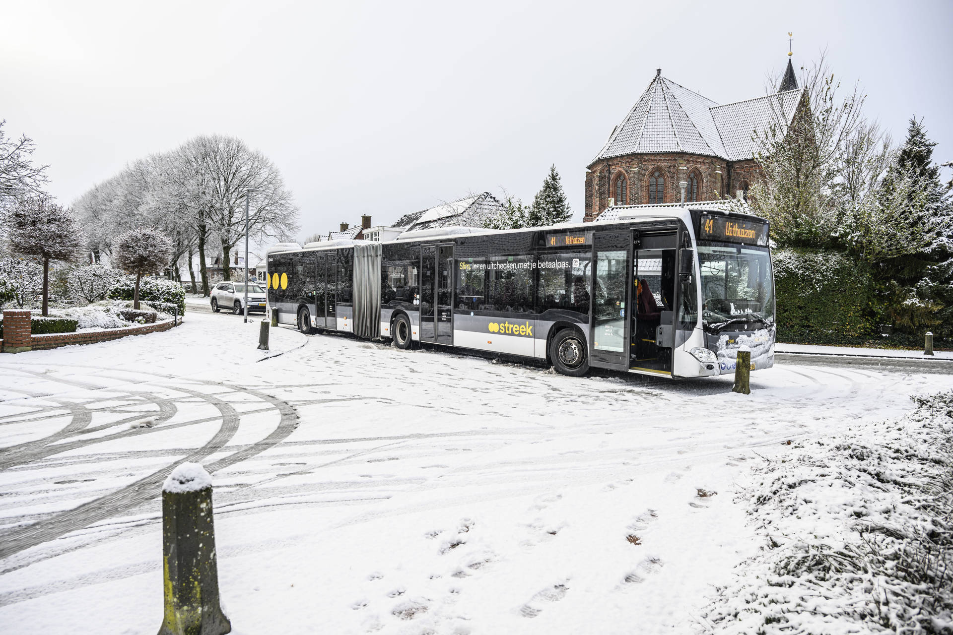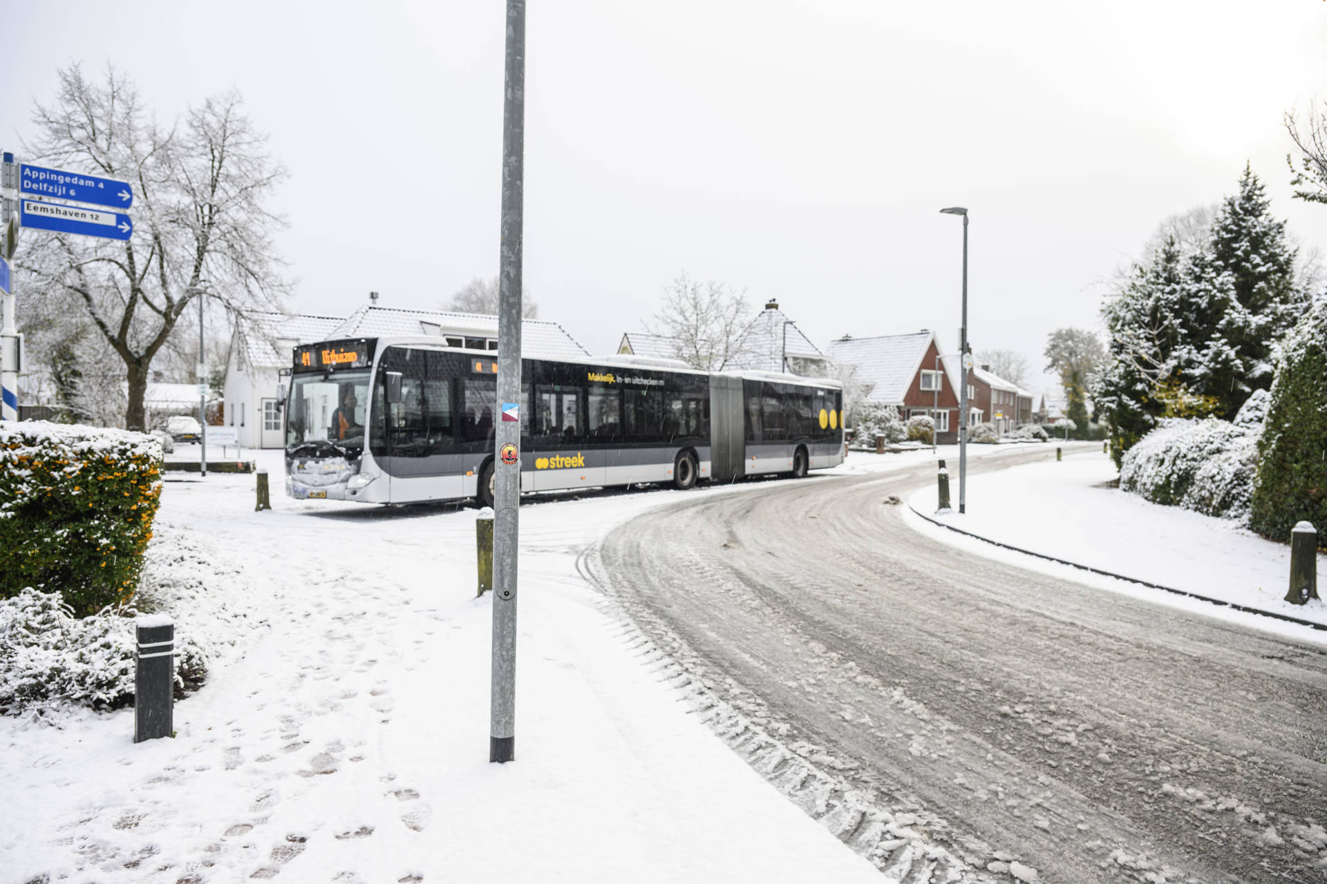 Geplaatst op 21 november 2025, om 16:17 uurHOLWIERDE – Vrijdagmiddag is een lijnbus op de Hoofdweg in Holwierde door gladheid in een bocht rechtdoor geschoten en tegen een paaltje tot stilstand gekomen. Het incident blokkeerde de kruising met de Nansumerweg, omdat de bus geen tractie meer had en vast kwam te zitten.