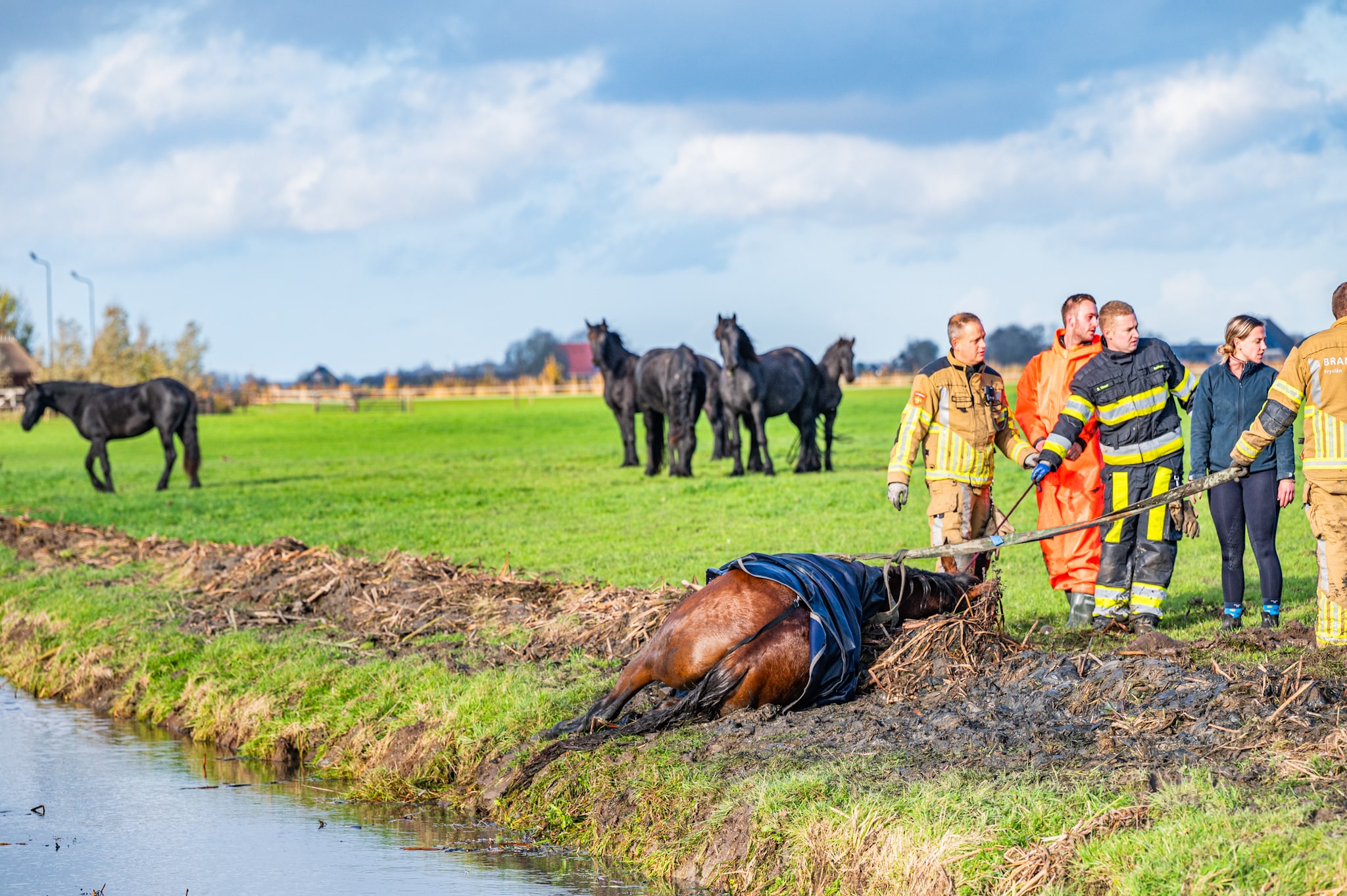 Na enige tijd kon het paard zelfstandig opstaan. De brandweer heeft het dier schoongespoten, waarna het door de eigenaar naar de stal is gebracht. Het paard raakte voor zover bekend niet gewond. De reddingsactie trok veel bekijks van omwonenden en voorbijgangers.