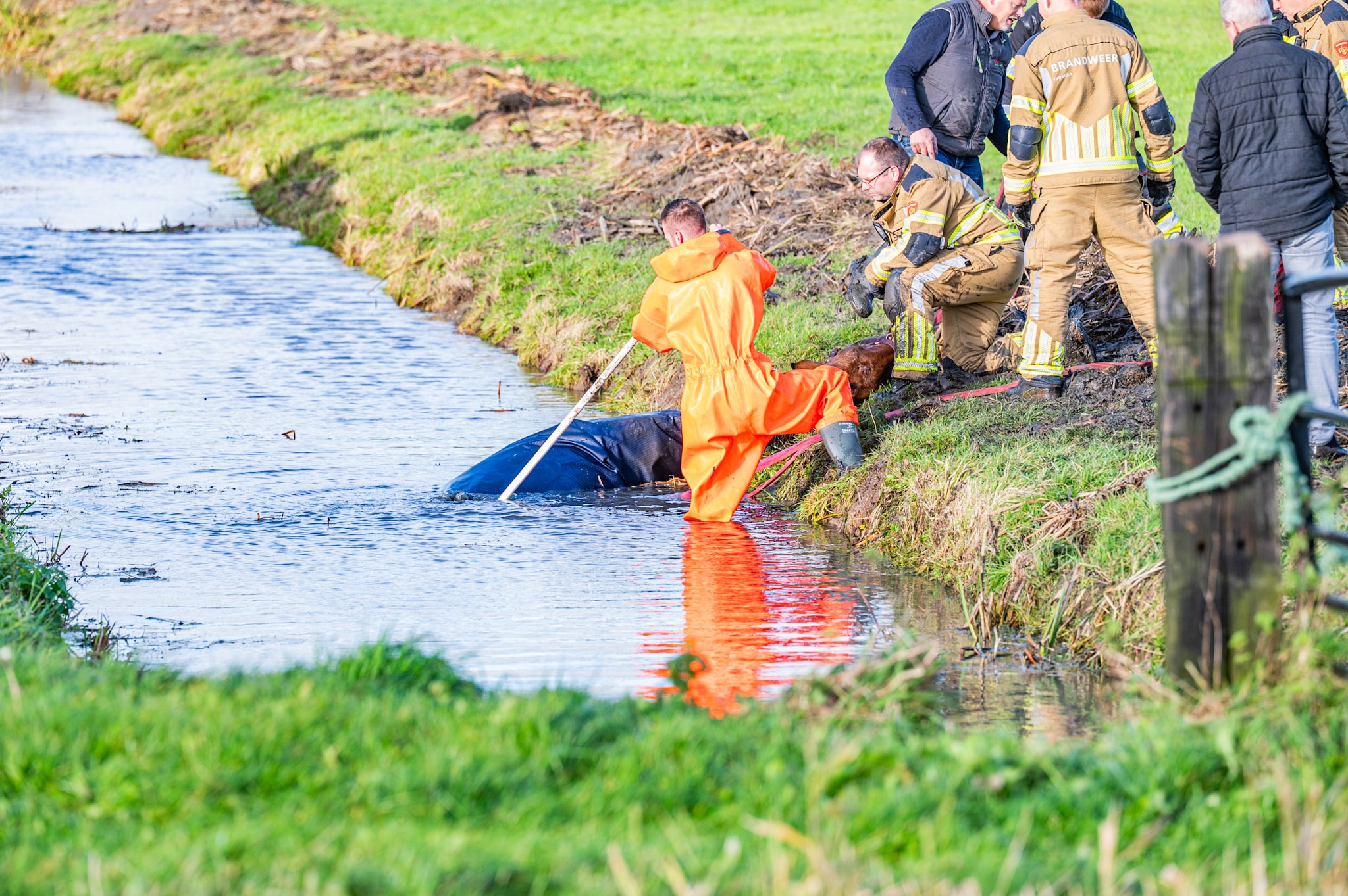 Brandweer redt paard uit sloot