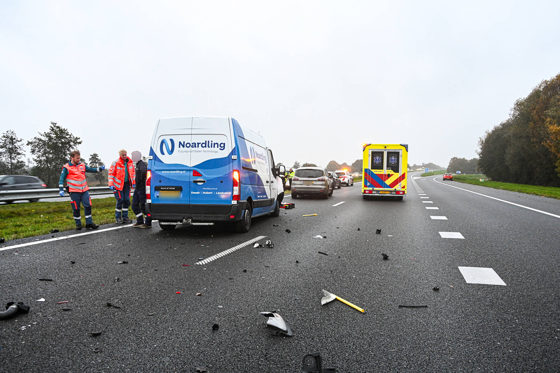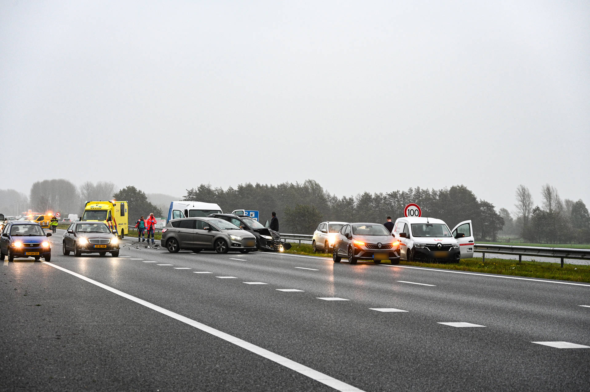 Rond 16:10 uur werden hulpdiensten ingeschakeld na een botsing tussen vijf auto’s en een bestelbus. Naast meerdere politiewagens en ambulances werd ook een traumahelikopter ingezet. De brandweer moest één van de inzittenden uit een voertuig bevrijden.