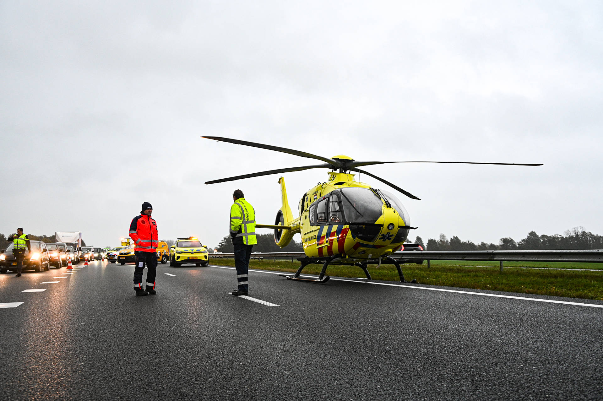 De A7 in de richting van Drachten is voorlopig afgesloten. Over de aard van de verwondingen is nog niets bekend. De oorzaak van het ongeval wordt onderzocht.