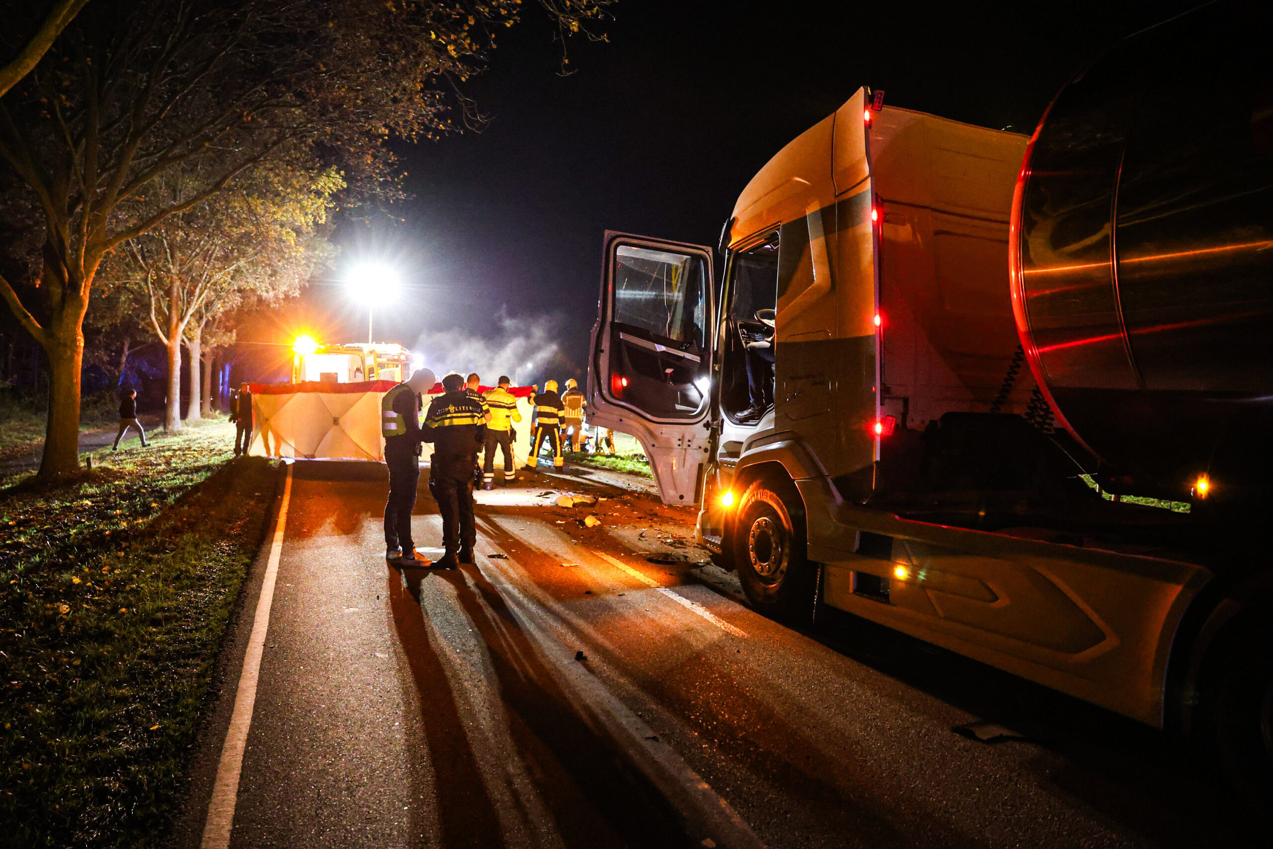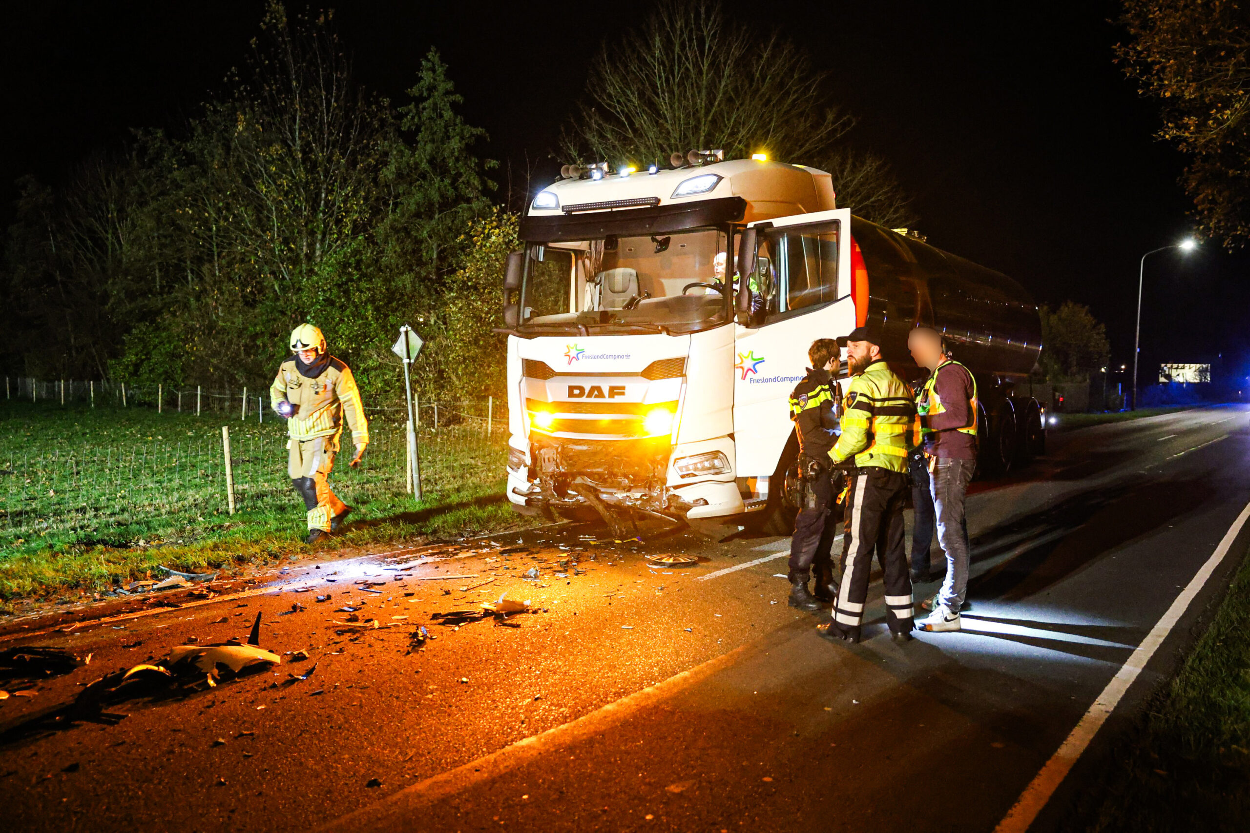 Vrouw bekneld en ernstig gewond bij frontale botsing vrachtwagen en auto