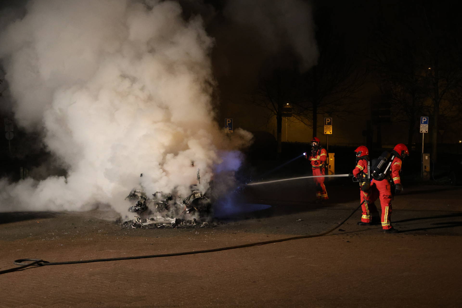 Auto brandt volledig uit op parkeerplaats, brandstichting niet uitgesloten