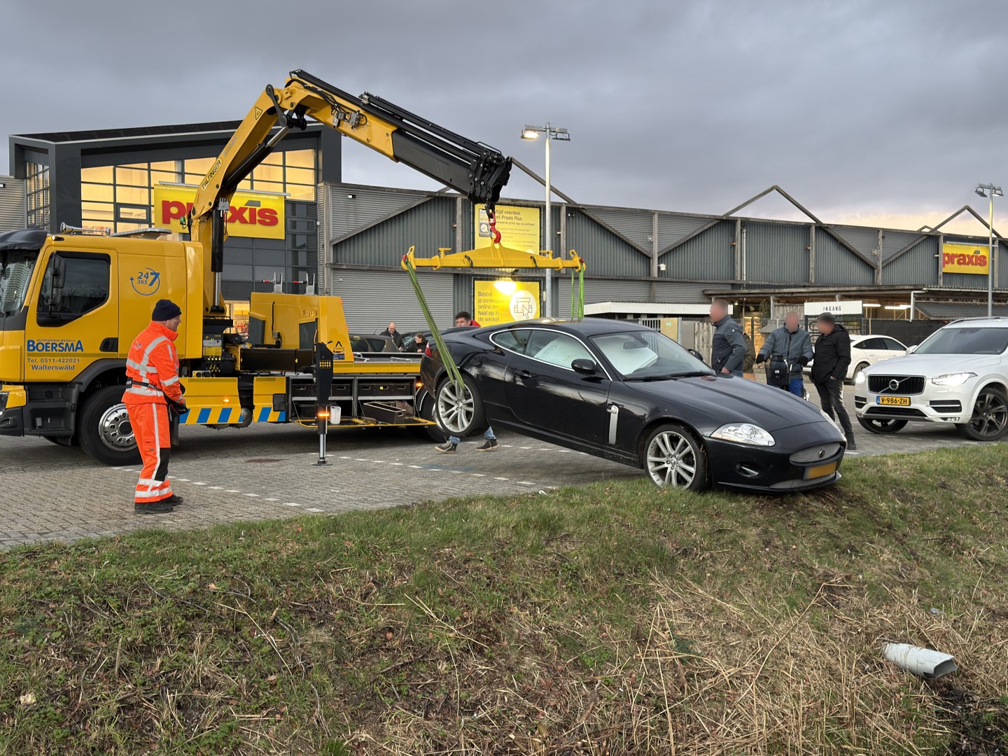 De bestuurder bleef ongedeerd en kon zelf uit de auto komen. Bergingsbedrijf Boersma heeft het voertuig terug op het parkeerterrein getakeld. De auto raakte nauwelijks beschadigd.