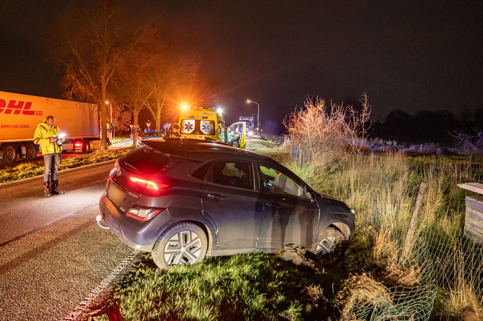 Hulpdiensten, waaronder politie, brandweer en ambulance, kwamen met spoed ter plaatse. De auto raakte vermoedelijk van de weg na de aanrijding. De bestuurder liep verwondingen op, onder meer door glas in het gezicht, en is per ambulance overgebracht naar het ziekenhuis.