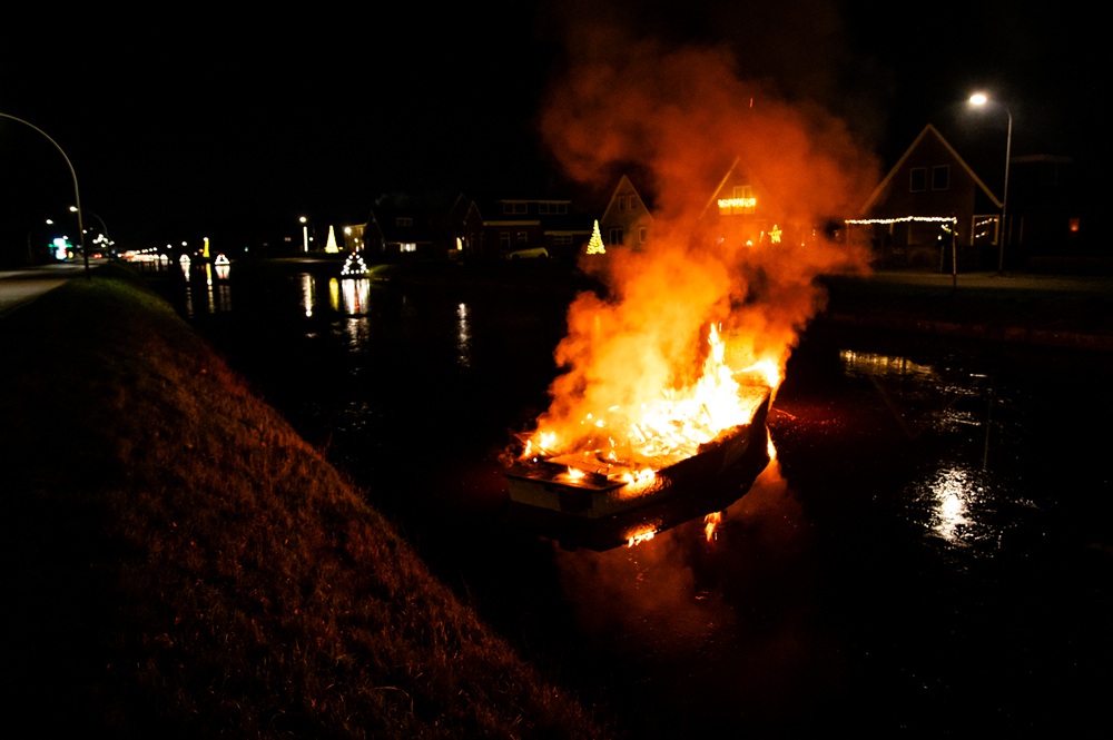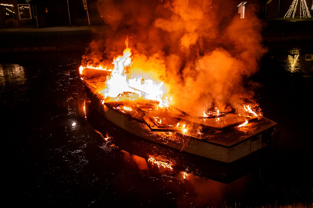 Boot in lichterlaaie, vermoedelijk brandstichting