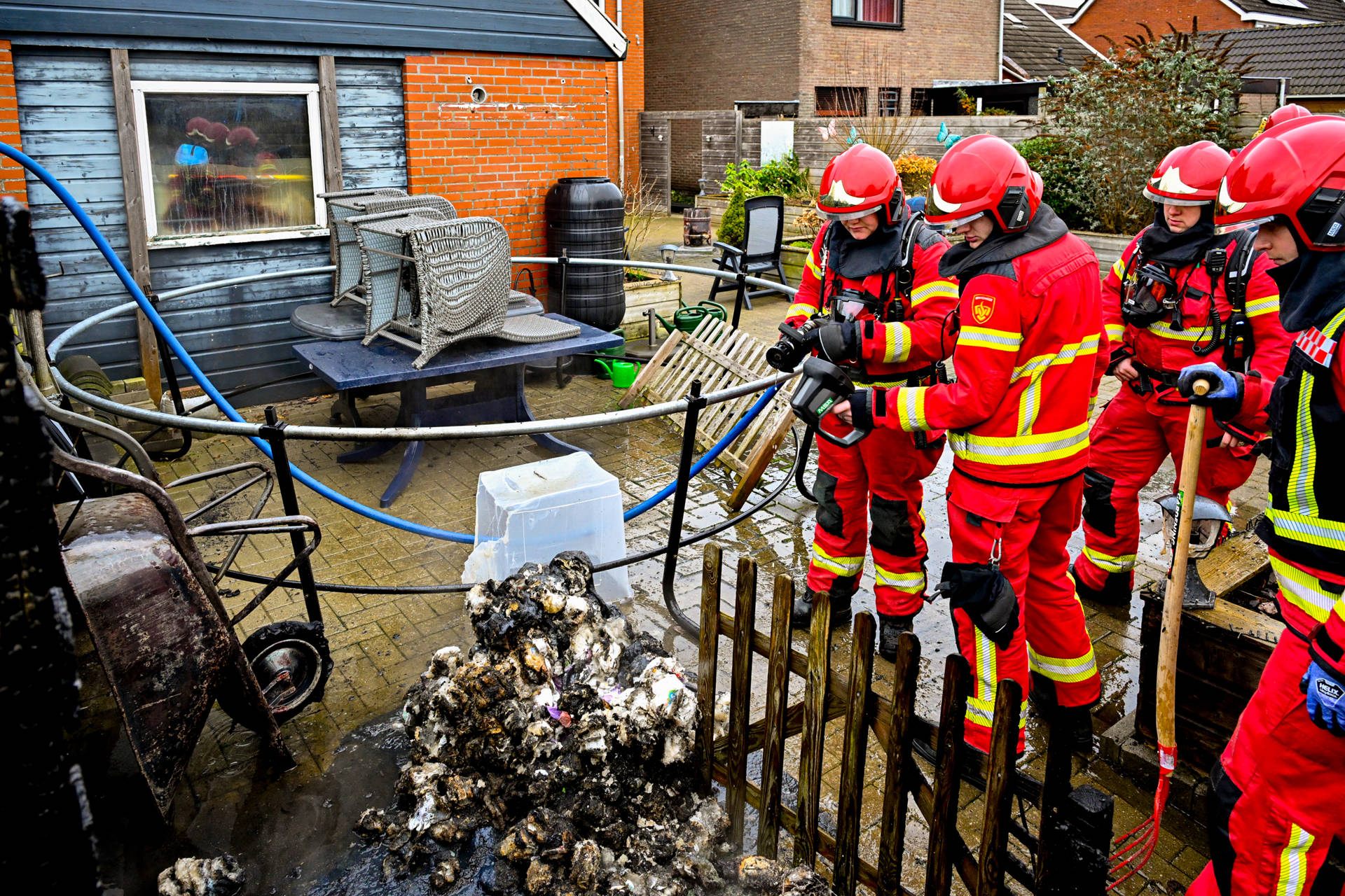 Brandende kliko achter woning, buren blussen eerste vlammen