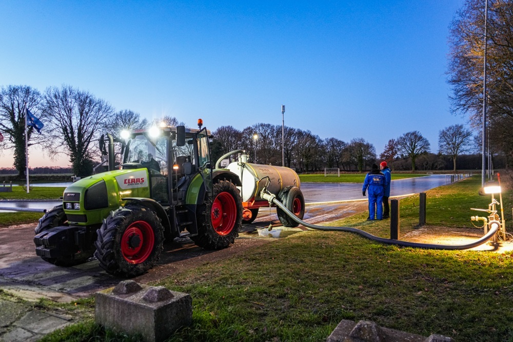Geplaatst op 25 december 2025, om 10:25 uurNOORDLAREN – In alle vroegte op Eerste Kerstdag is ijsvereniging De Hondsrug in Noordlaren begonnen met het voorbereiden van een ijsvloer. De temperatuur daalde afgelopen nacht tot -4 graden Celsius, waardoor er bijna één centimeter ijs kon aangroeien.