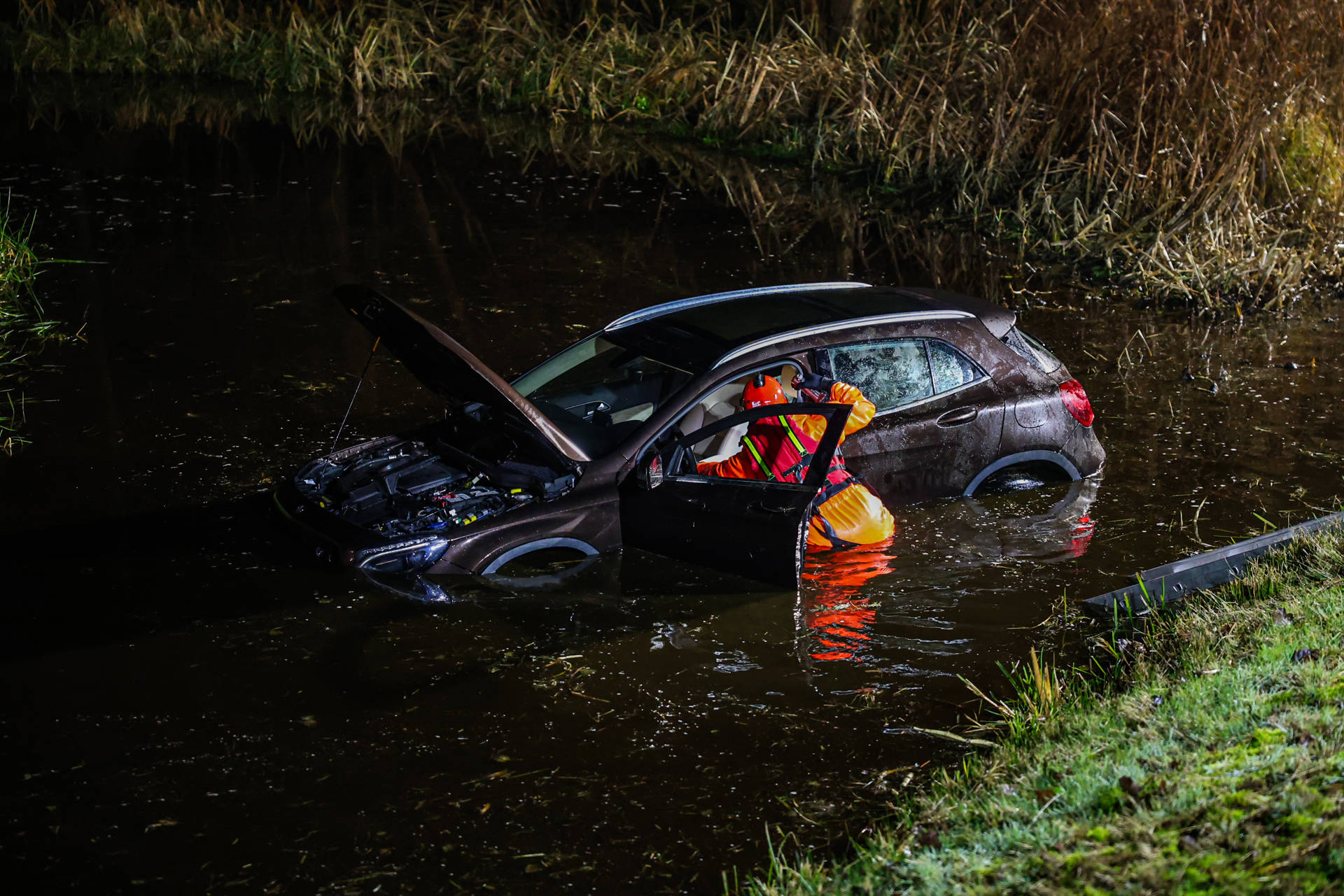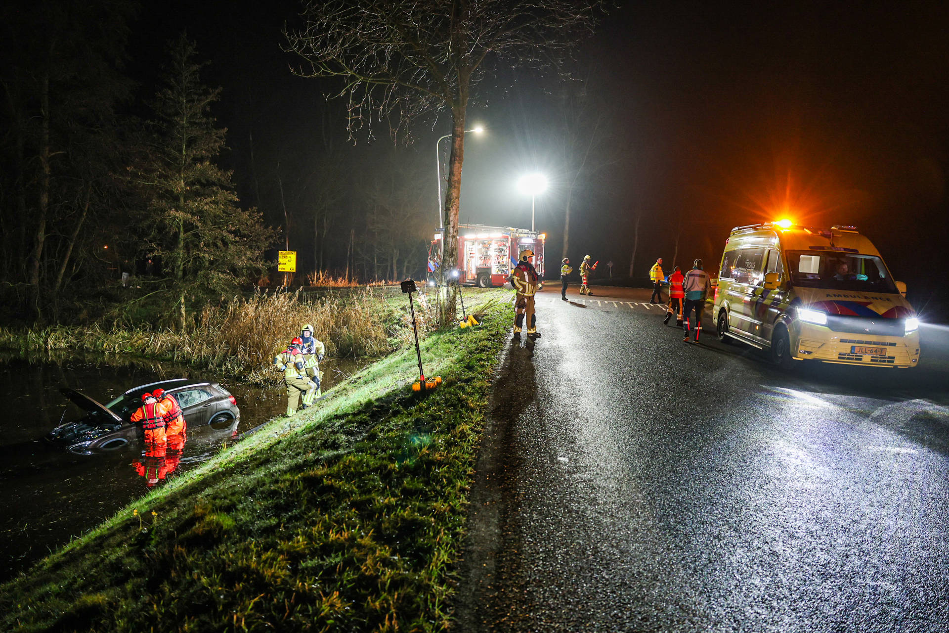 TIJNJE – Zaterdagavond is een auto te water geraakt aan De Rakken bij Tijnje, nadat de bestuurder rond 22:35 uur van de weg raakte en enkele meters lager in het water terechtkwam.