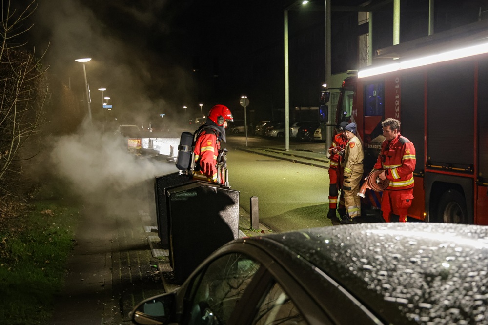 De brandweer was snel ter plaatse en heeft de container vol laten lopen met water om het vuur te doven. Daarna konden de brandweerlieden terugkeren.