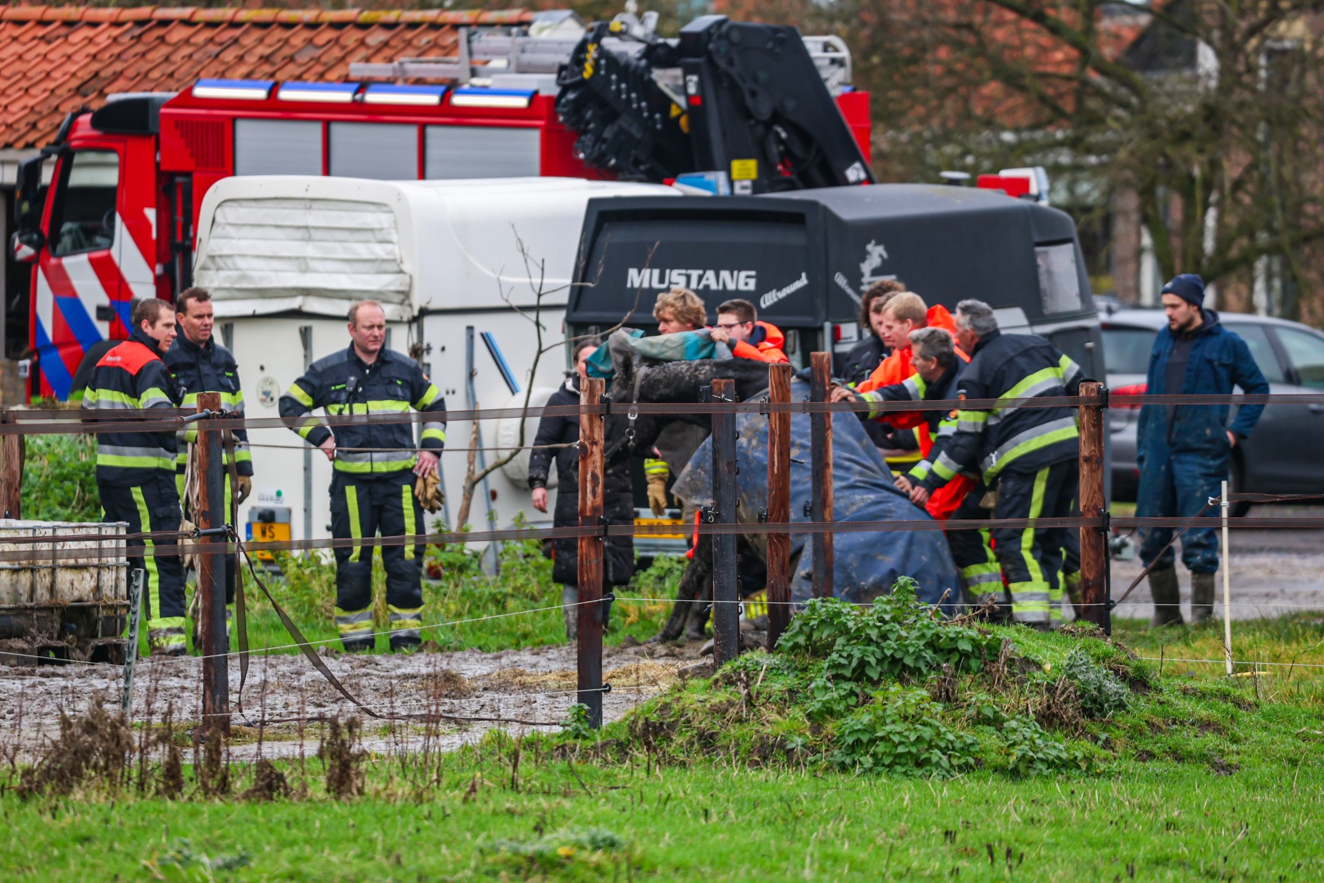 Uiteindelijk wist het dier toch zelf overeind te komen, waarna de inzet kon worden beëindigd en de brandweer vertrok. Het paard raakte niet gewond.