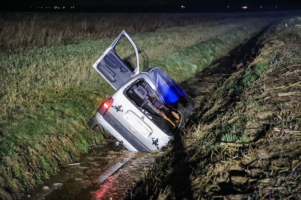 NIEUW SCHEEMDA – Zondagavond rond 23.45 uur is een auto in een sloot beland aan de Zwaagweg in Nieuw Scheemda. Het ongeval vond plaats op een spekgladde klinkerweg.