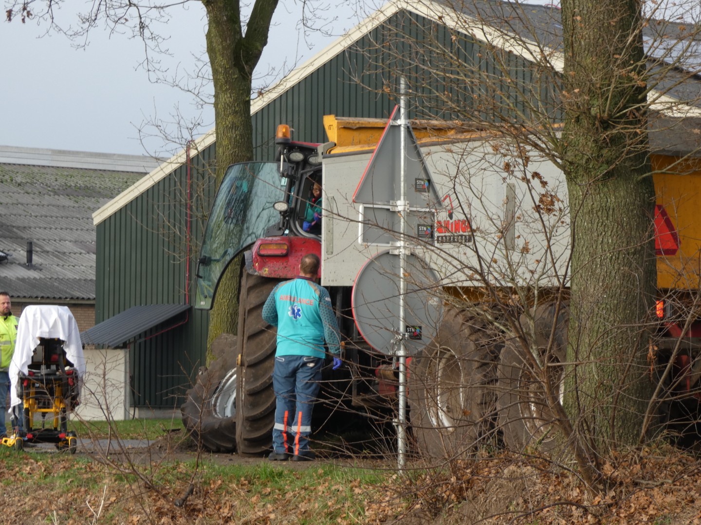De melding kwam rond 11.15 uur binnen. Politie en ambulance waren snel ter plaatse, waarna ook de brandweer werd opgeroepen. Bij aankomst bleek de bestuurder vast te zitten in de cabine van het voertuig. De brandweer heeft een speciale brug geplaatst om op gelijke hoogte te komen met de cabine en slaagde erin de bestuurder te bevrijden.