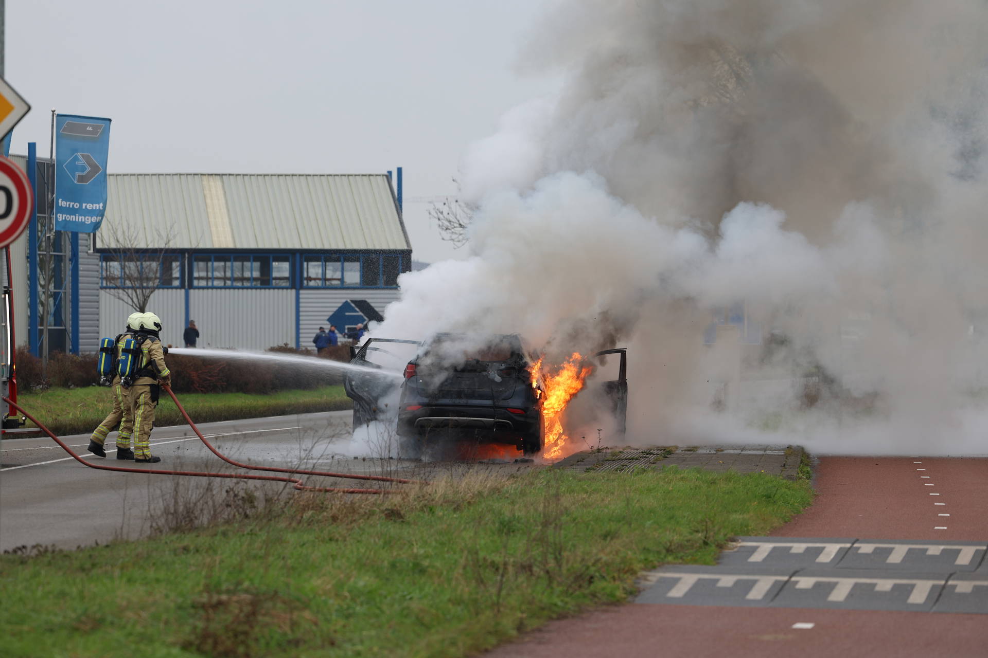 De brandweer van Peize arriveerde snel op locatie, maar kon niet voorkomen dat het voertuig volledig in vlammen opging. Bij aankomst stond de auto al volledig in brand.