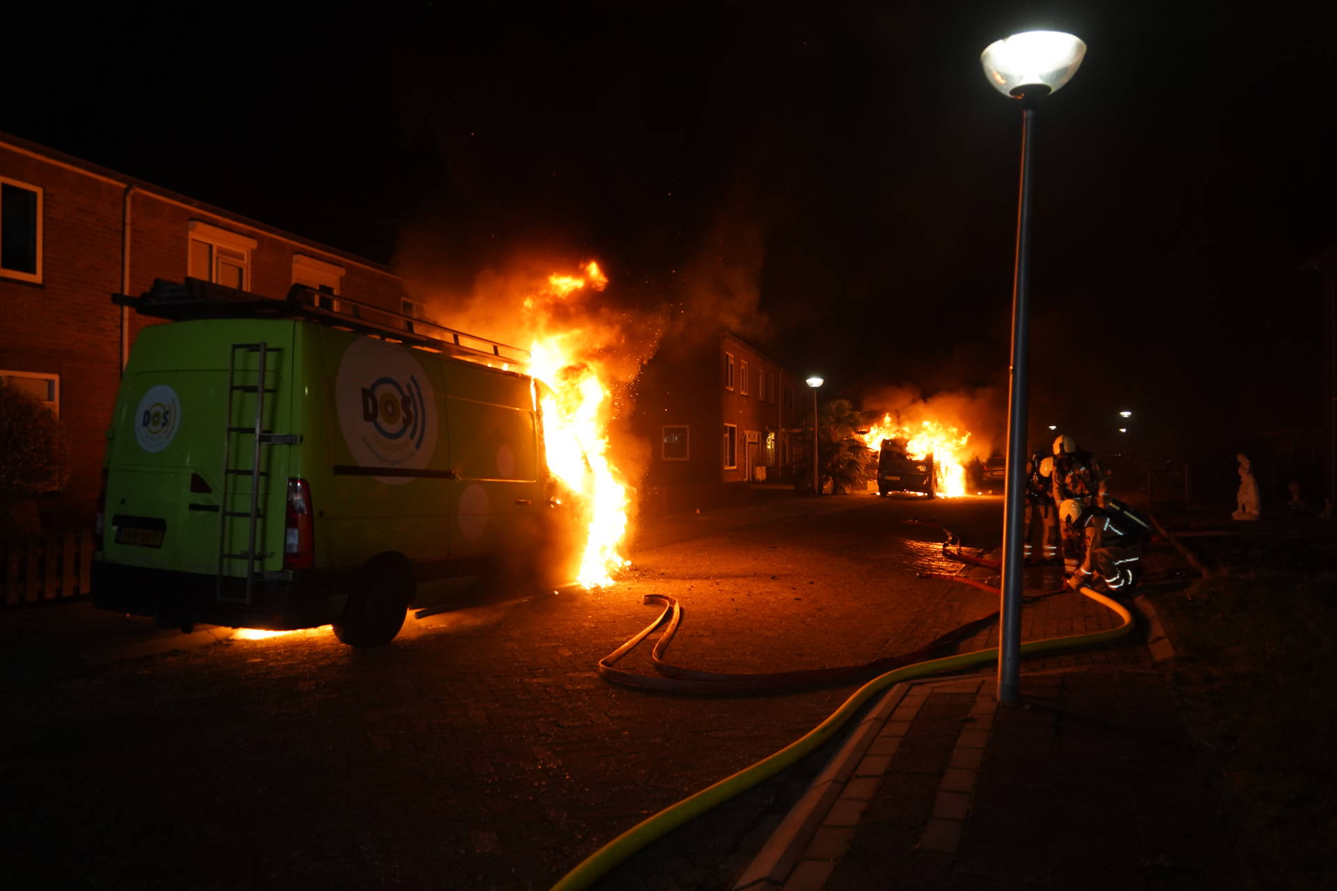 Twee bestelbussen op steenworp afstand van elkaar in brand