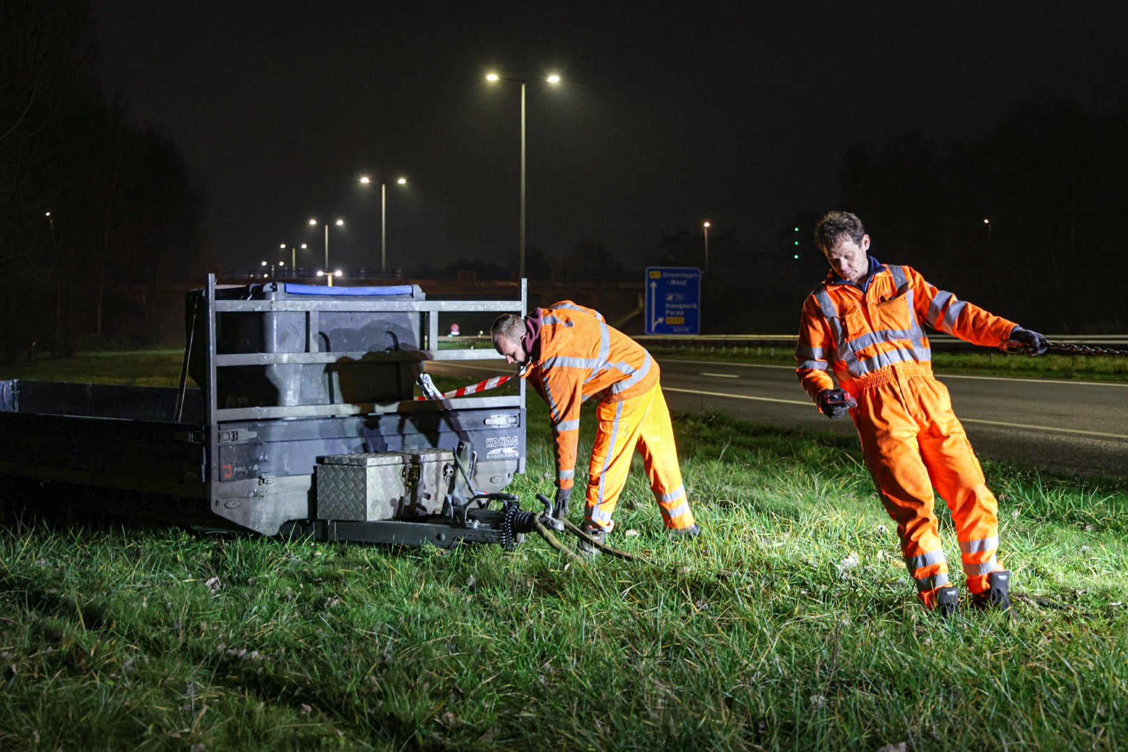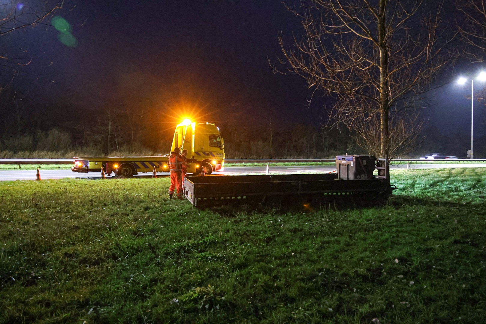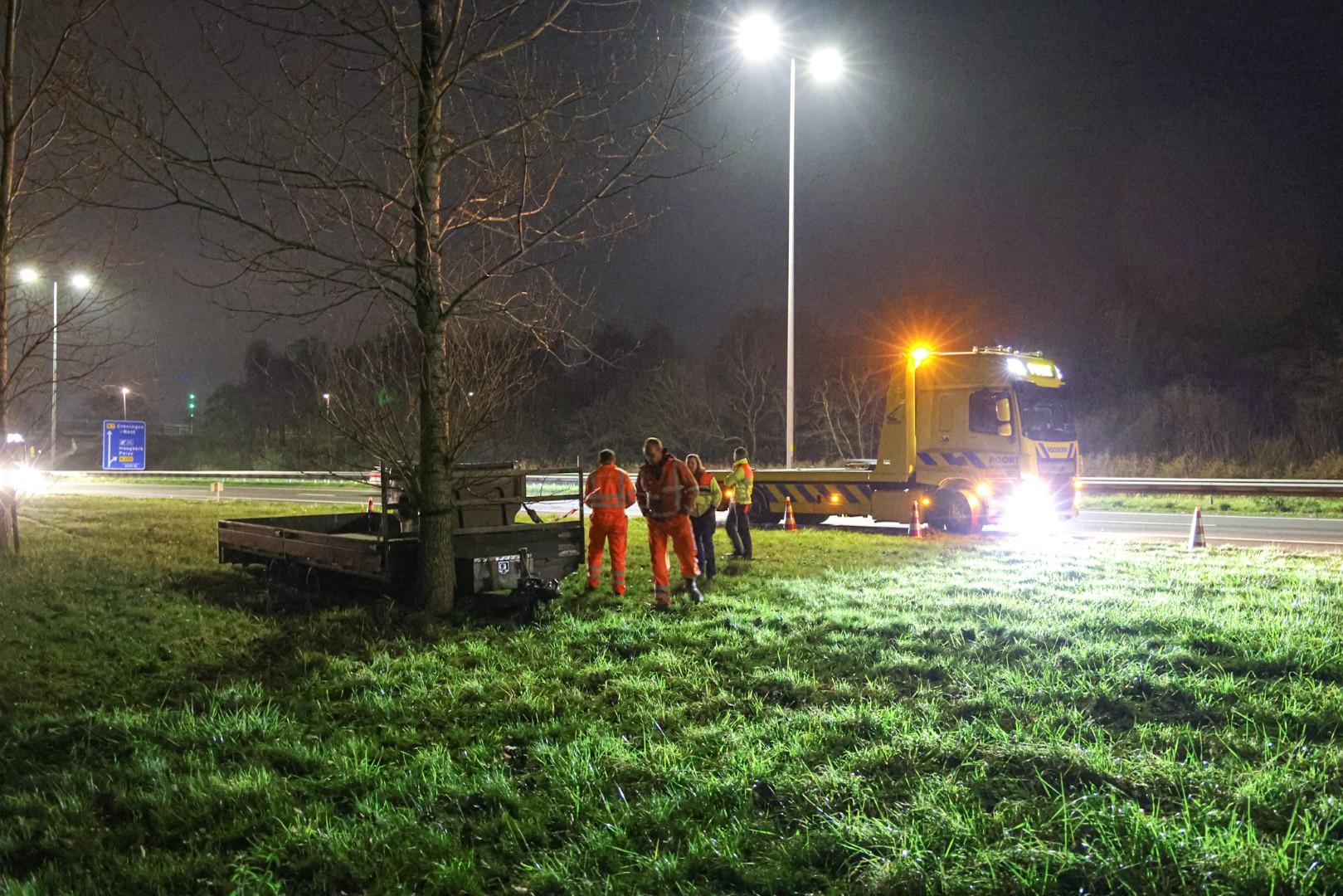 Hoe de trailer los heeft kunnen raken, is nog onbekend. Rijkswaterstaat is samen met Poort bezig met het bergen van de trailer.
