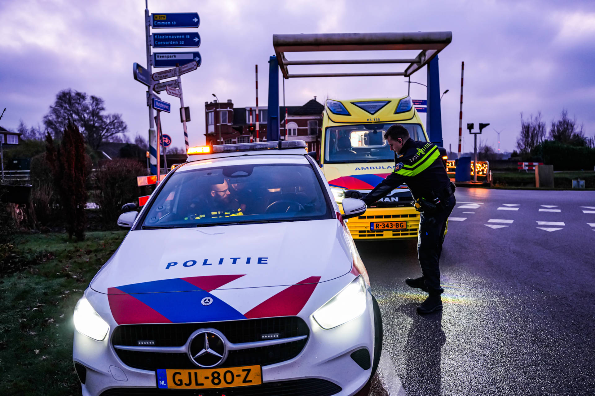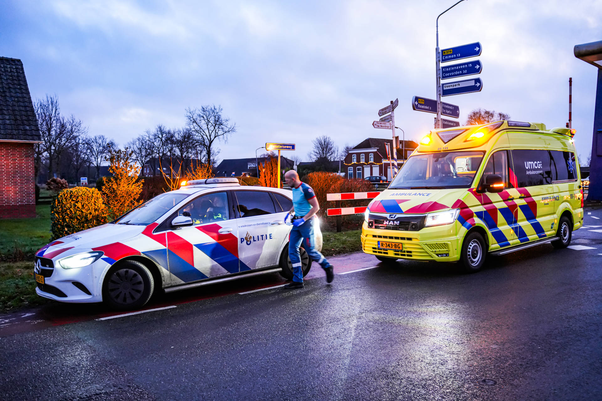 Geplaatst op 22 december 2025, om 09:22 uurEMMER COMPASCUUM – Op de kruising van het Hoofdkanaal WZ en de Munsterseweg in Emmer-Compascuum heeft maandagochtend rond 07.55 uur een aanrijding plaatsgevonden tussen een auto en een voetganger. Hulpdiensten, waaronder politie en ambulance, kwamen met spoed ter plaatse.
