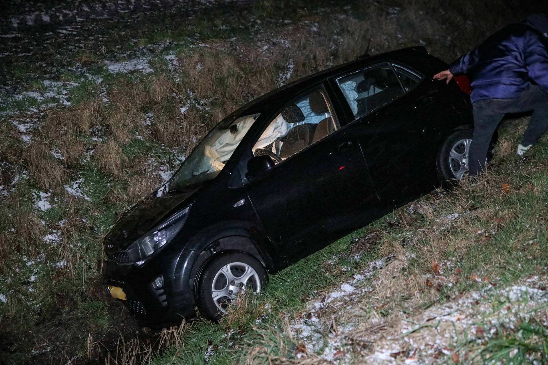 Auto belandt door winterse gladheid in sloot