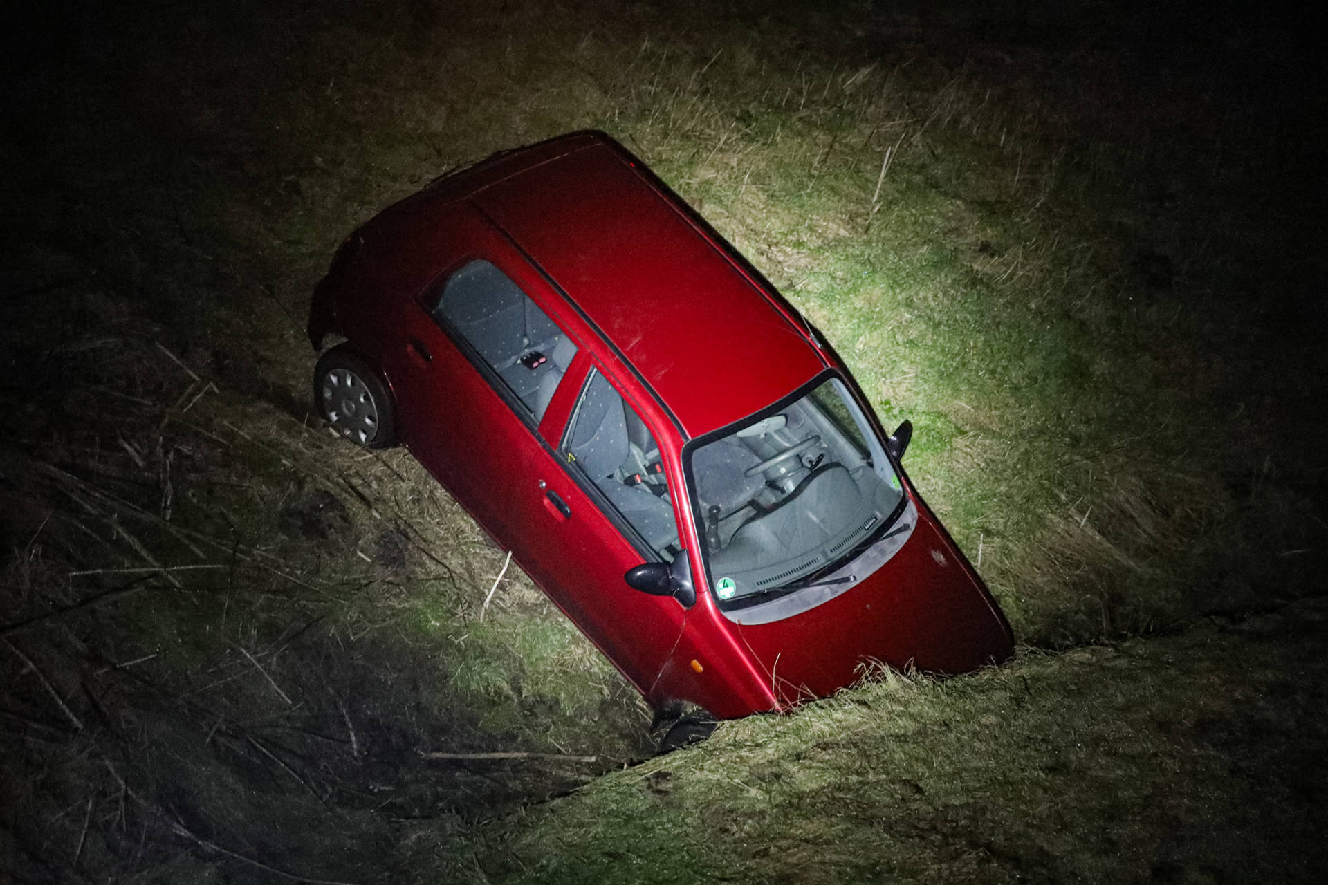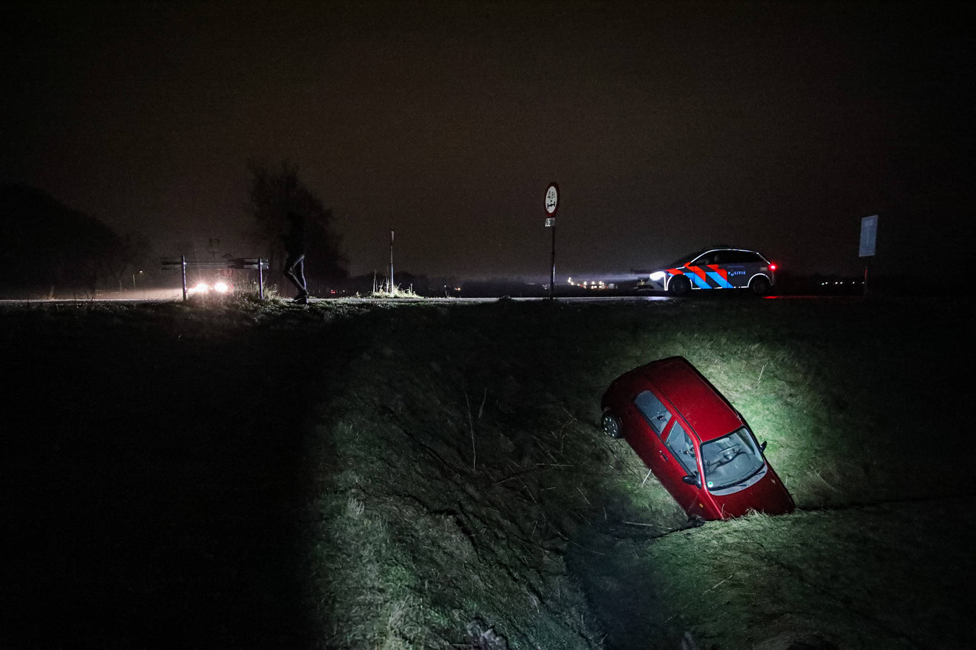 Auto belandt in sloot na eenzijdig ongeval, bestuurder spoorloos