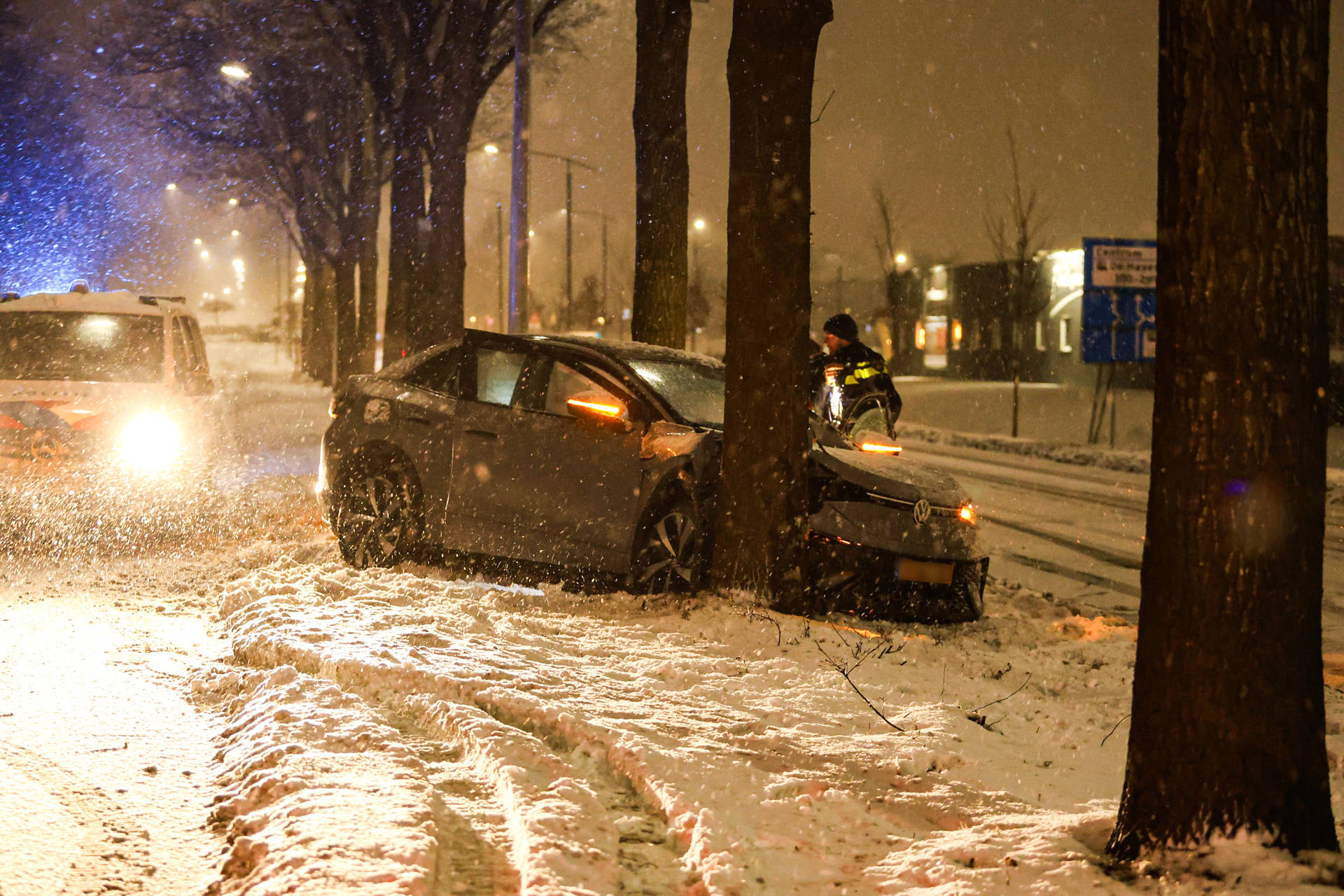 De bestuurder verloor door gladheid de controle over het stuur en botste tegen een boom langs de weg. Het ongeval gebeurde tijdens het rijden op de Noorderhogeweg.