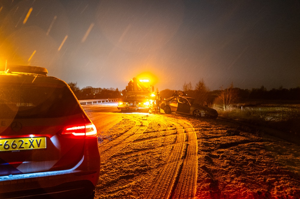 URETERP – Op de N381 bij Ureterp is dinsdagavond een auto van de weg geraakt en in een sloot beland als gevolg van gladheid door sneeuwval. Het ongeval gebeurde tijdens een door het KNMI afgegeven code geel.