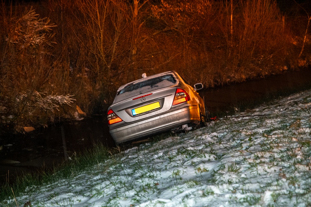 Auto in sloot door gladheid, inzittenden met schrik vrij