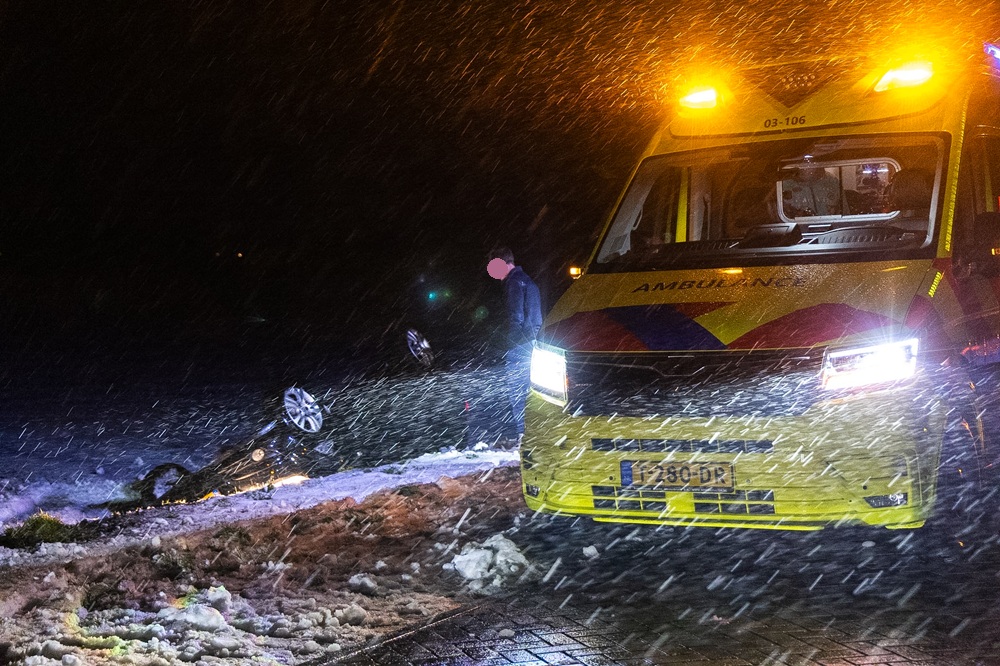 Geplaatst op 12 januari 2026, om 09:30 uurZUIDLAARDERVEEN – Maandagochtend rond 06.25 uur is een automobilist op De Knijpe bij Zuidlaarderveen op de kop in een sloot beland na een eenzijdig ongeval. Door de spekgladde weg raakte de bestuurder de controle over het voertuig kwijt.