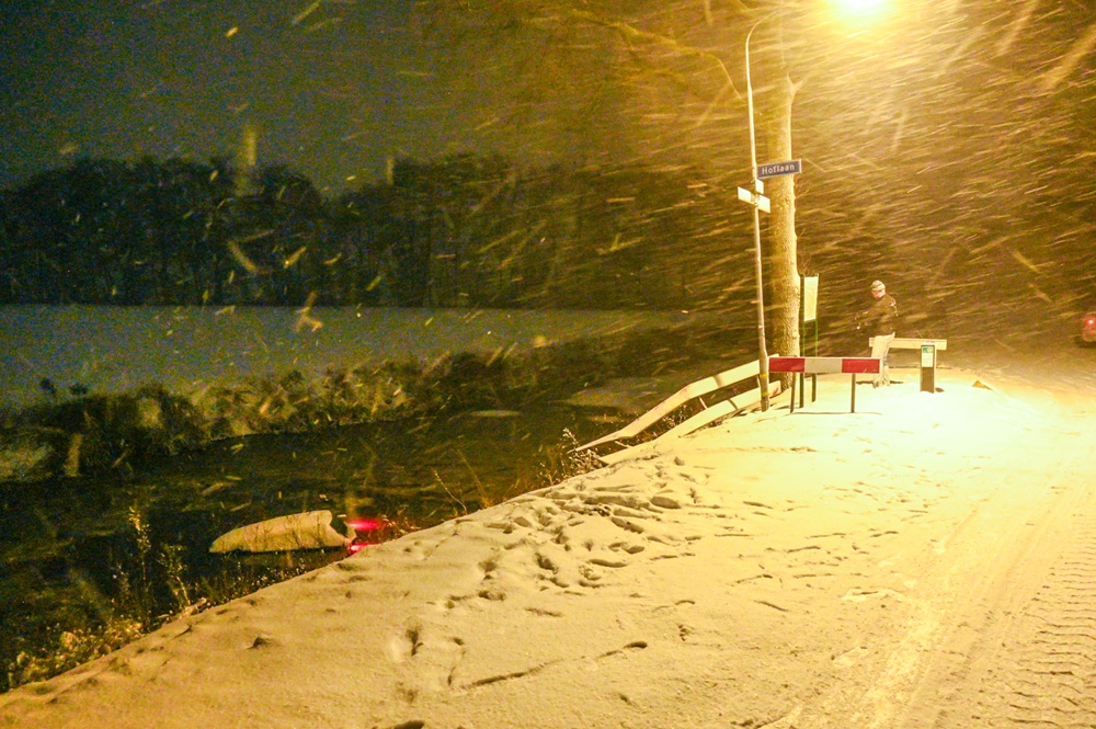 OPENDE – Op het kruispunt van de Hoflaan met de Kaleweg in Opende is maandagavond een auto rechtdoor geschoten en in een vaart terechtgekomen. Het voertuig kwam vanuit de richting van Opende, reed door een hek en zonk vrijwel direct na het te water raken.