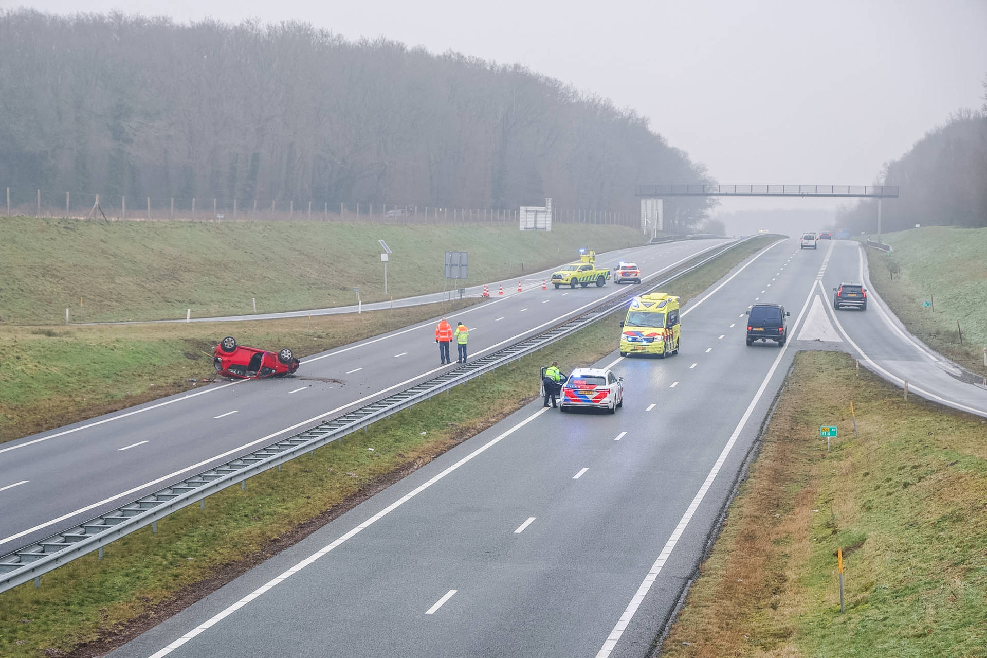 Geplaatst op 24 januari 2026, om 14:40 uurGIETEN – Op de N33 bij de afrit van Gieten heeft zaterdagmiddag rond 13.20 uur een eenzijdig verkeersongeval plaatsgevonden waarbij een auto op de kop is beland.