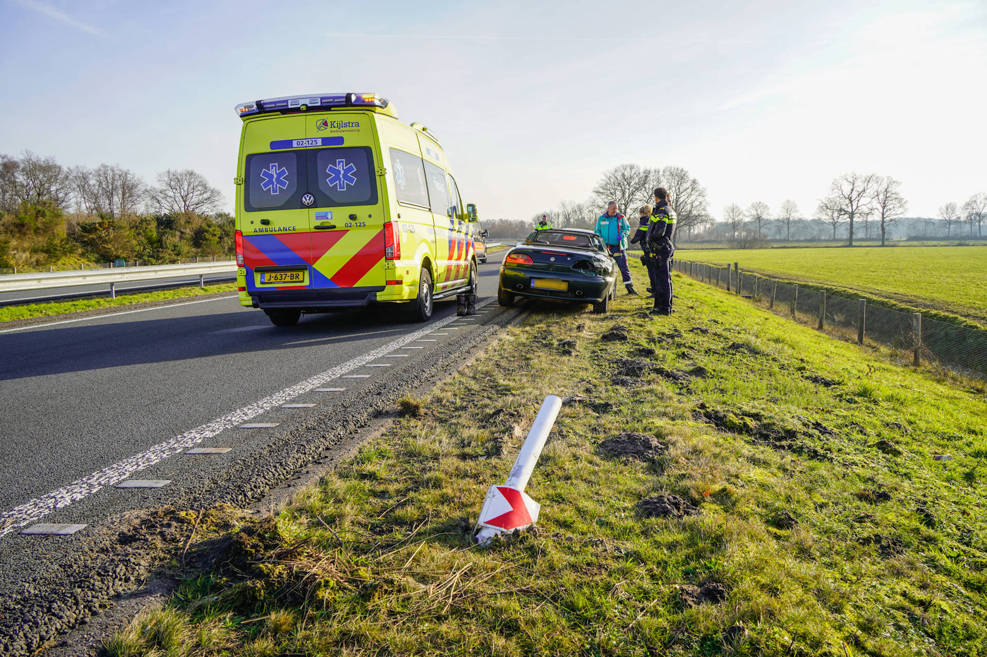 Geplaatst op 20 januari 2026, om 15:21 uurDONKERBROEK – Op de N381 bij Donkerbroek is dinsdagmiddag rond 14.13 uur een cabrio tegen de middenvangrail gereden. De auto kwam aan de overzijde van de weg in de berm tot stilstand.